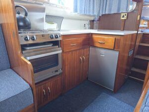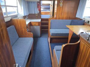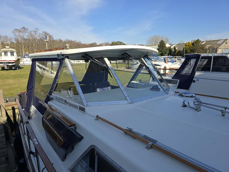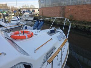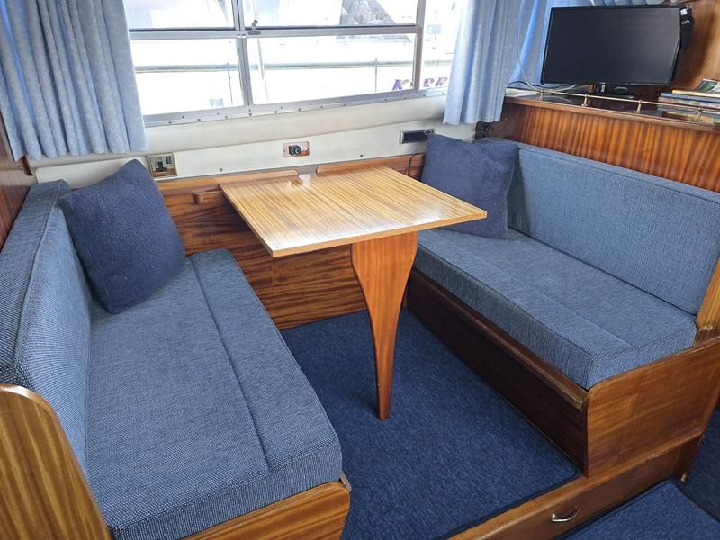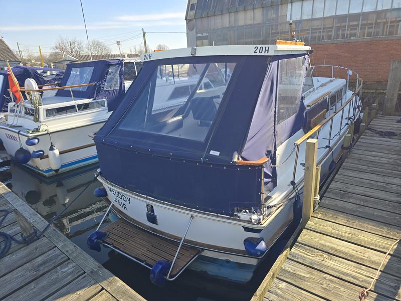 Broom Ocean 30 – Circa. 1971 – 2x Mercedes OM636 42hp diesels through shafts – 4 berth accommodation with a toilet and shower compartment. Specification to include; holding tank, shore power supply with battery charger and 240v sockets, warm air heating and more. Engines serviced 2024. BSC 2028. Refitted galley. A fine example of these timeless river cruisers, benefiting from extensive recent investment by both the current and previous owners! Viewing recommended!