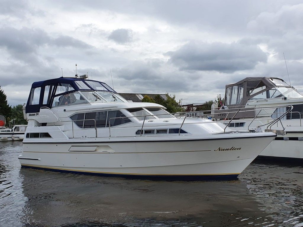 BROOM OCEAN 34 – 1995 – Powered by a single Perkins Sabre M135 diesel through a shaft – 4 berth accommodation with two toilets and showers. Specification to include; bowthruster, electric windlass, holding tank, Eberspacher warm air heating, shore power with 240v immersion and battery charger, calorifier. 889 hours. New canopy and cockpit upholstery 2020. NYA stock benefitting from a full machine compound and polish, antifoul and mechanical inspection by our Service Centre. A fantastic example presented in great order inside and out!