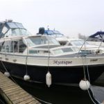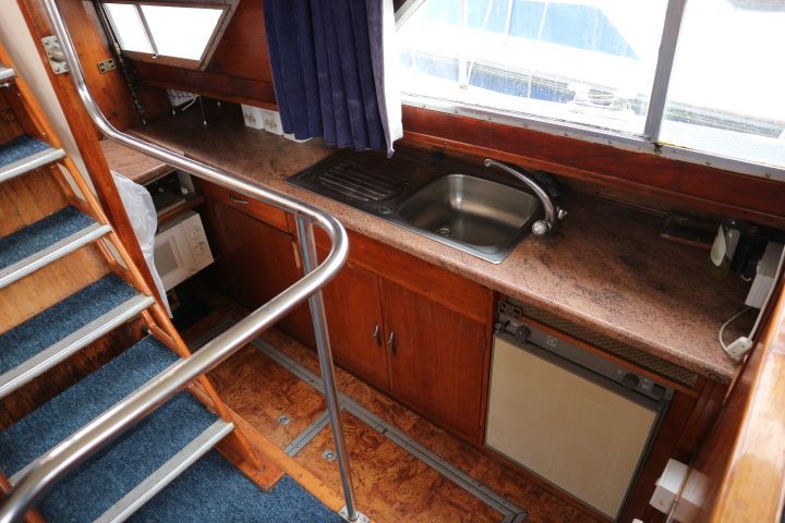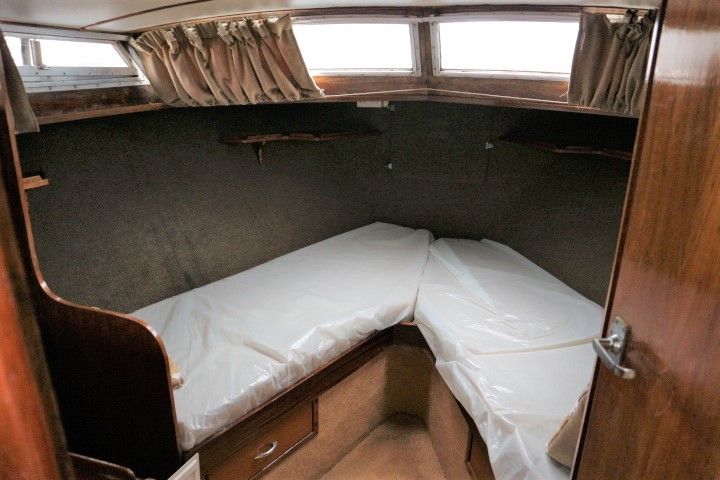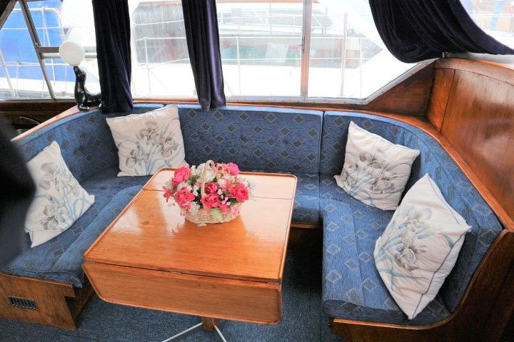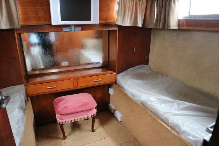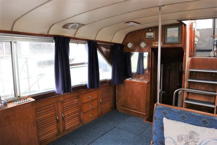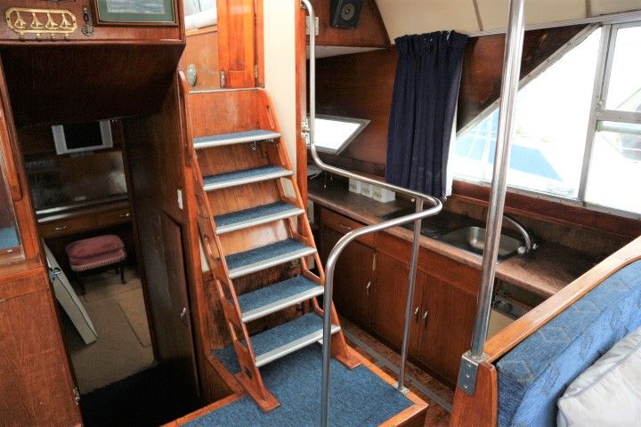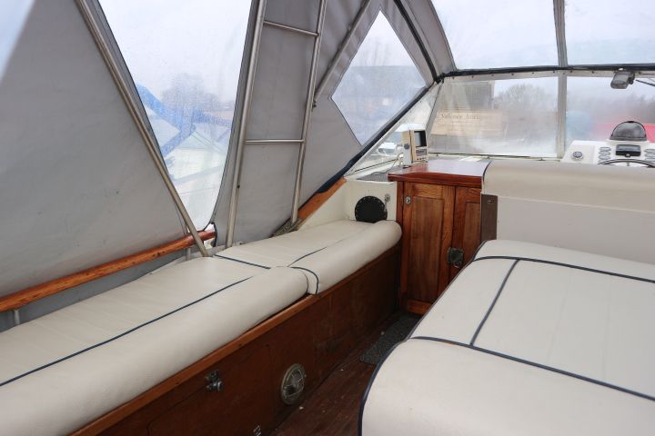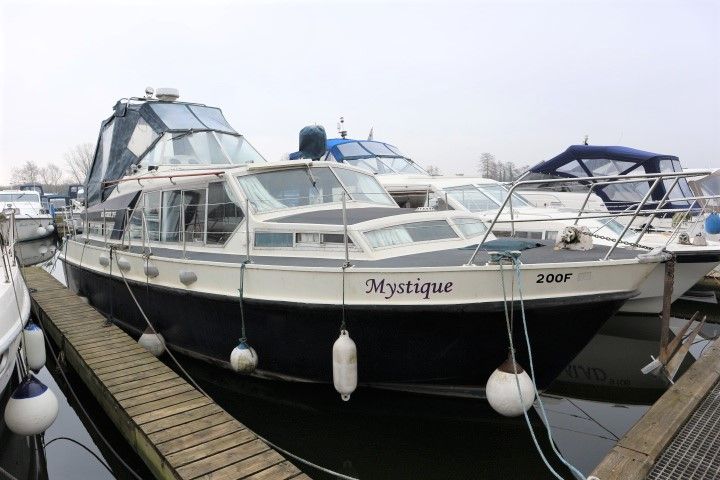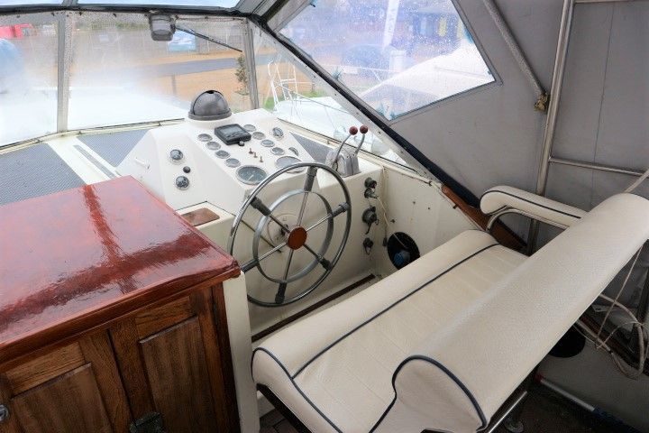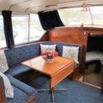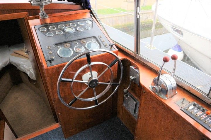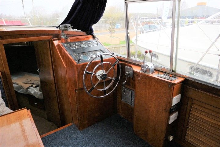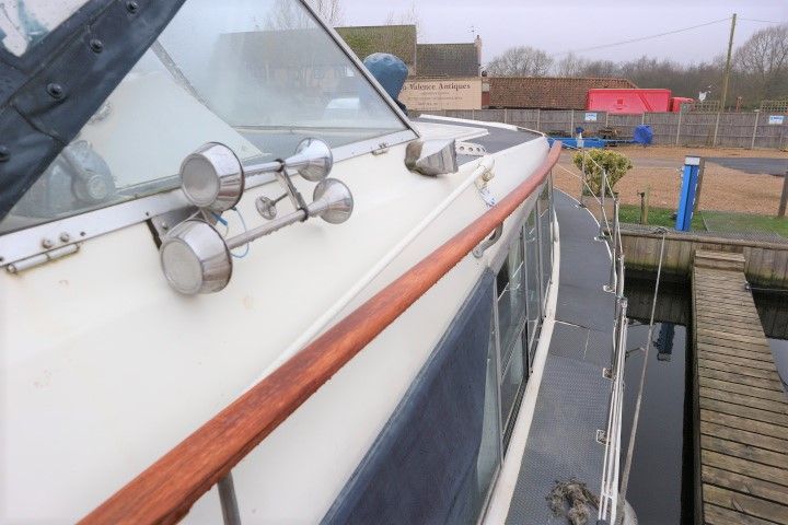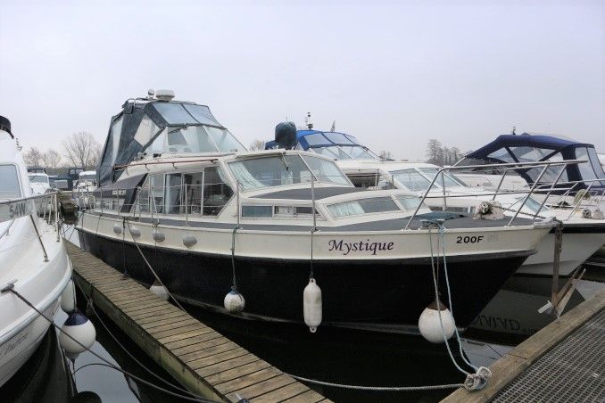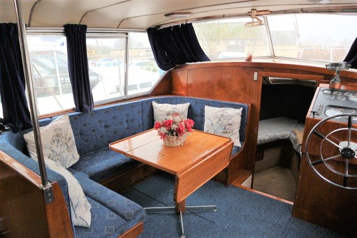 BROOM OCEAN 37 – circa 1970 – Twin Perkins 145HP diesel engines, 6 berth accommodation with twin toilet and show compartments (one porta potti). Galley, microwave, inverter, BSS and 2018/19 Broads Toll paid. A spacious and comfortable old girl. Despite her age and painted exterior she would make an ideal live aboard or budget long range cruiser.