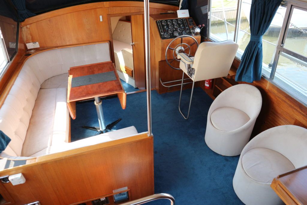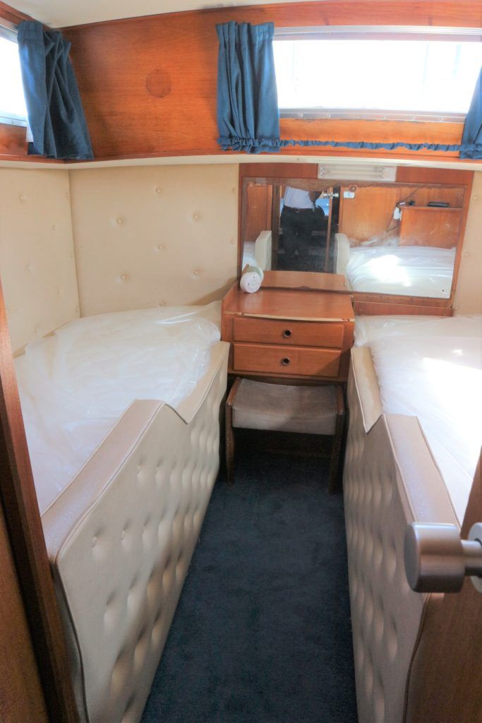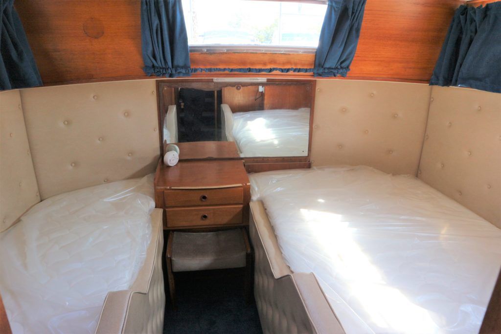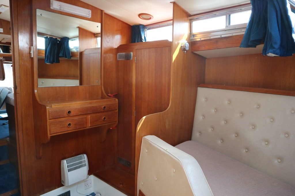 BROOM OCEAN 37 – 1979 – 2 x Perkins 145hp diesel engines. 5 berth accommodation in two en-suite cabins. Electric oven, dishwasher, fridge and microwave. Spec including Inverter, warm air heating, immersion, shore power, battery charger, navigation equipment, folding screens and arch allowing greater access on the Inland Waterways. The Ocean 37’s generous accommodation lends itself perfectly to long term cruising/living. As traded in, part exchange to clear.
