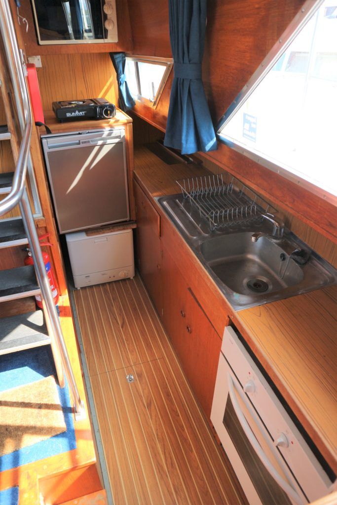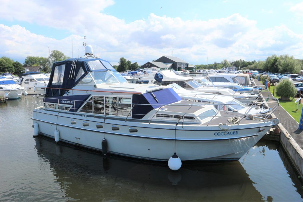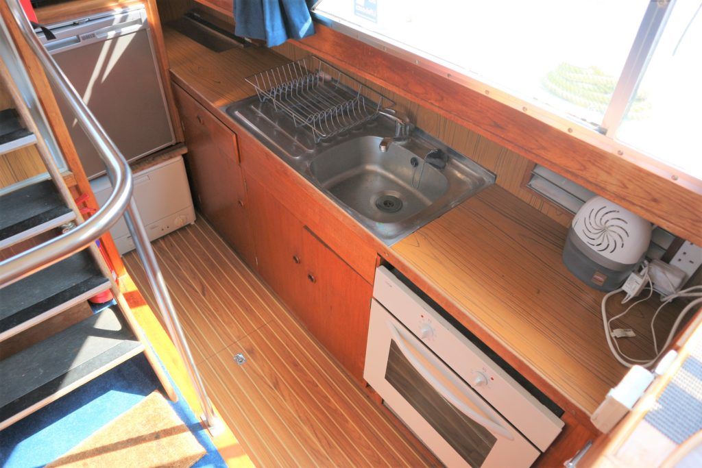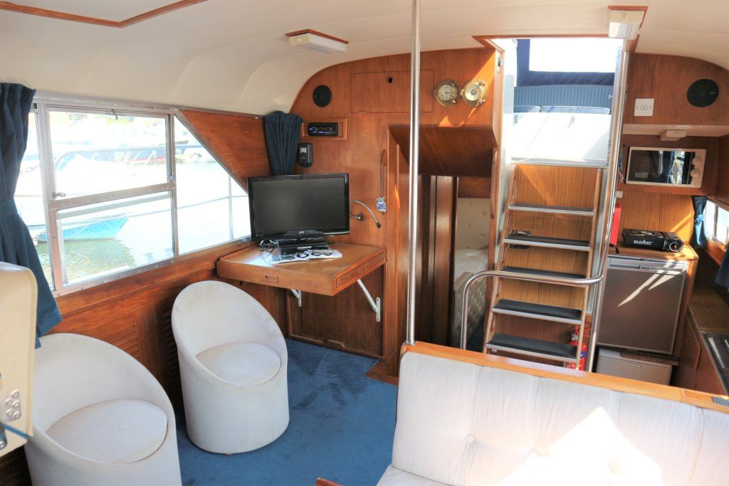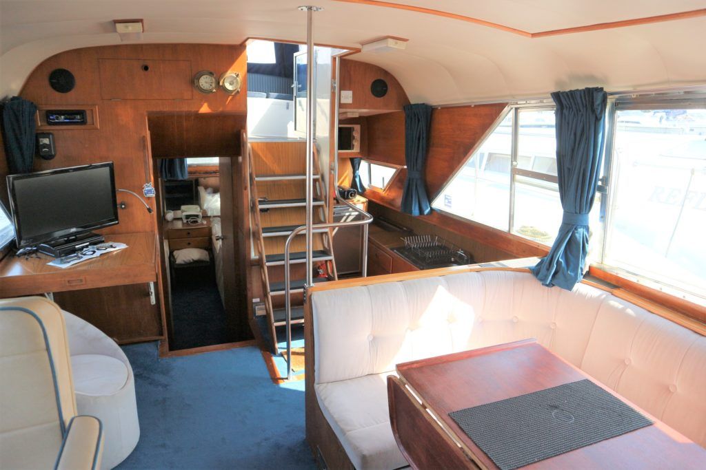 BROOM OCEAN 37 – 1979 – 2 x Perkins 145hp diesel engines. 5 berth accommodation in two en-suite cabins. Electric oven, dishwasher, fridge and microwave. Spec including Inverter, warm air heating, immersion, shore power, battery charger, navigation equipment, folding screens and arch allowing greater access on the Inland Waterways. The Ocean 37’s generous accommodation lends itself perfectly to long term cruising/living. As traded in, part exchange to clear.