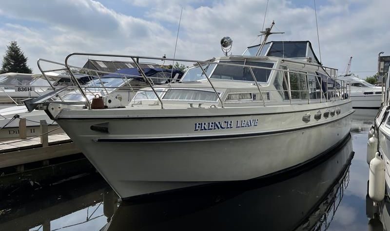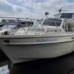 BROOM OCEAN 37 – 1981 – Powered by twin Perkins Range 4 HT63544 (185hp) diesels through shafts – 6 berth accommodation with 2 toilets and 2 showers – Specification to include; Warm air heating, shore power with charger and 240v sockets, holding tank, anchor winch, oven, grill, hob and refrigerator. One of the later Ocean 37s with the more desirable next generation Perkins diesels! Ever popular model for those looking to spend extended time aboard!