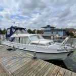 BROOM OCEAN 37 – 1973 – Powered by twin Perkins HT63544 (145hp) diesel engines through shafts – 6 berth accommodation with x 2 toilets/ shower compartments – Specification to include; shore power with battery charger and 240v sockets, warm air heating, anchor winch, oven, grill, hob and refrigerator. BSC Expires Sept 2026. Ever popular model for those looking to spend extended time aboard!