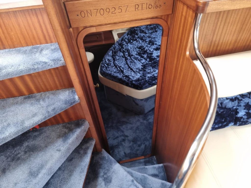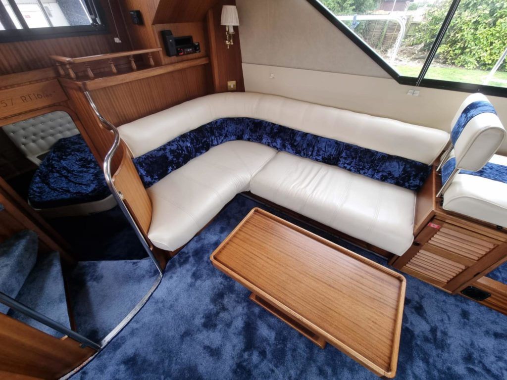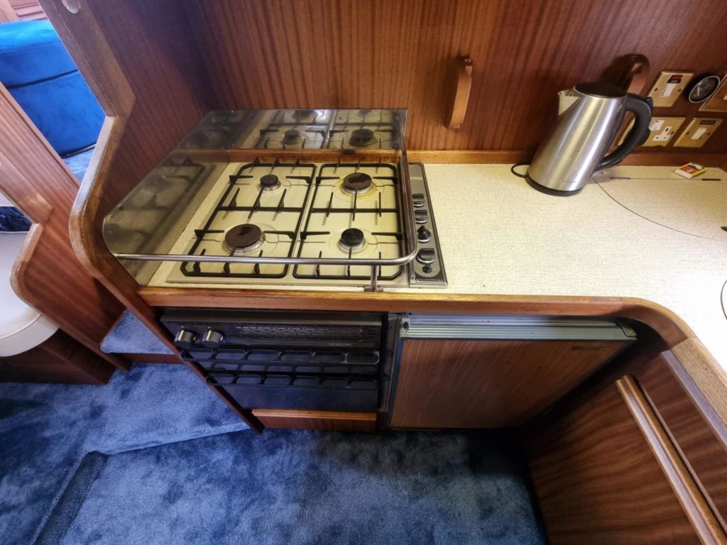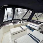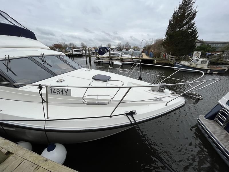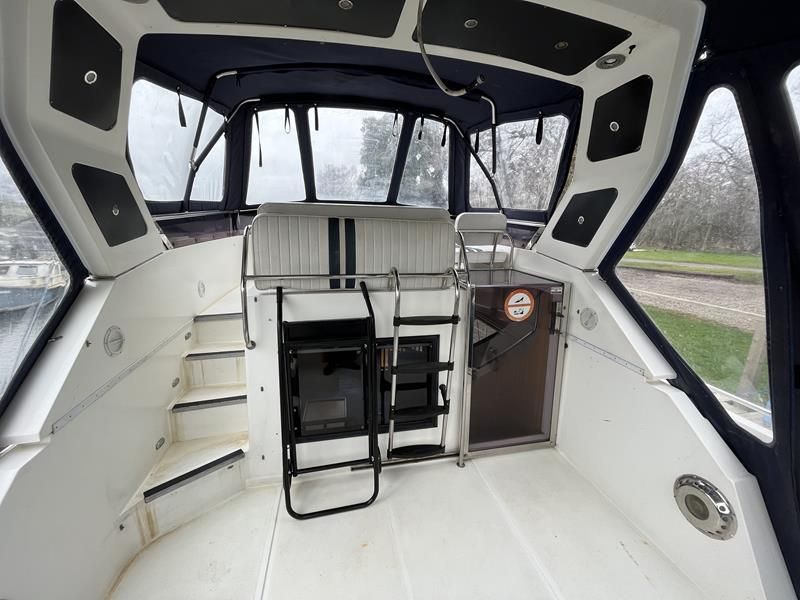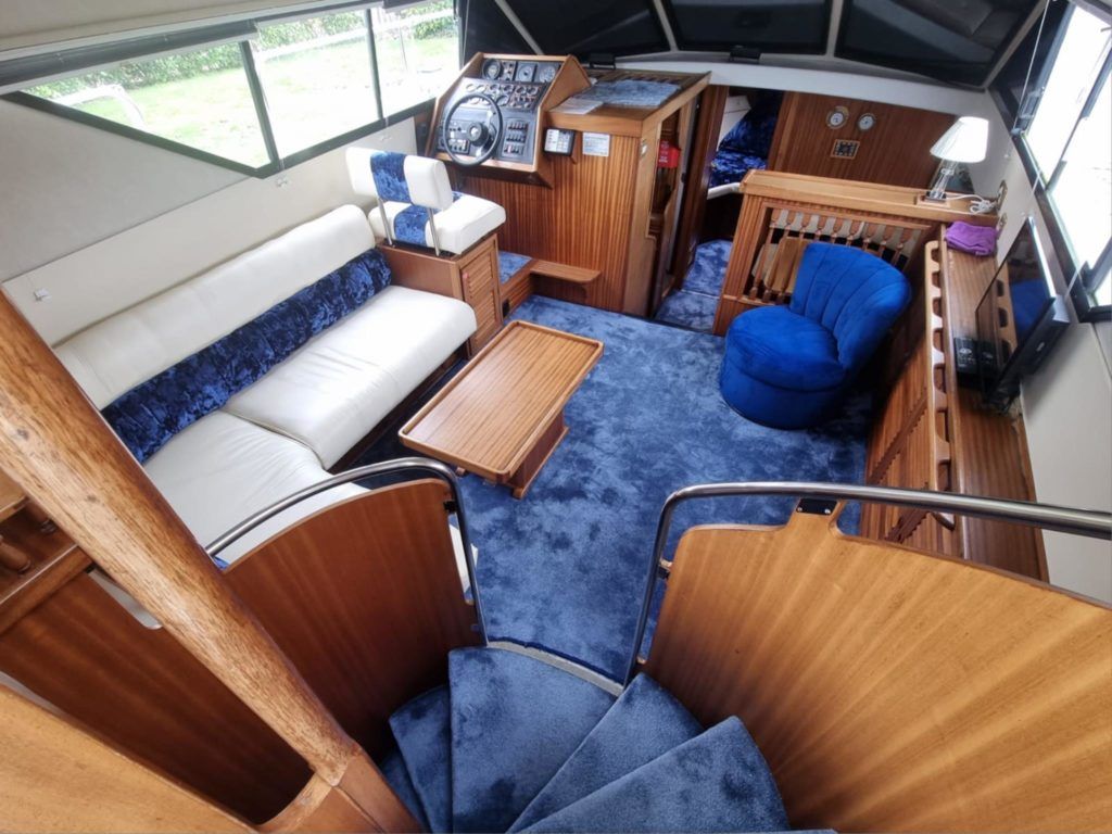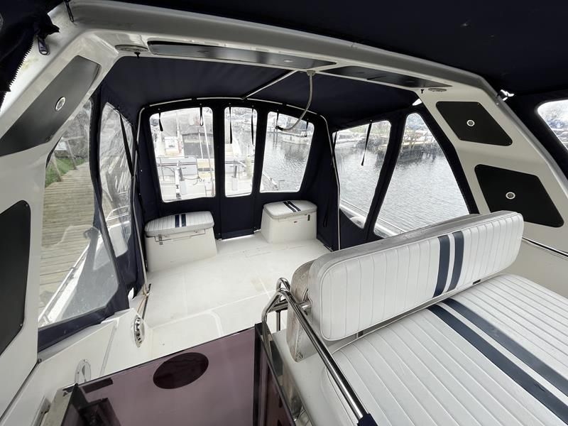 BROOM OCEAN 40 – 1987 – 2 x Ford Sabre 212hp diesel engines. 6 berth accommodation with two toilets and two showers. Specification includes electric windlass, folding radar arch, Eberspacher warm air heating, shore power supply with battery charger, 240v sockets and immersion, Raymarine A series plotter, VHF, 18″ Raydome, and autopilot. Fully equipped galley including; 4 burner hob, oven and grill. One of Broom’s rare flybridge models, a sought after combination of an aft cabin and raised steering position, providing excellent visibility when cruising. Just reduced!