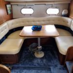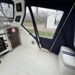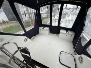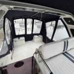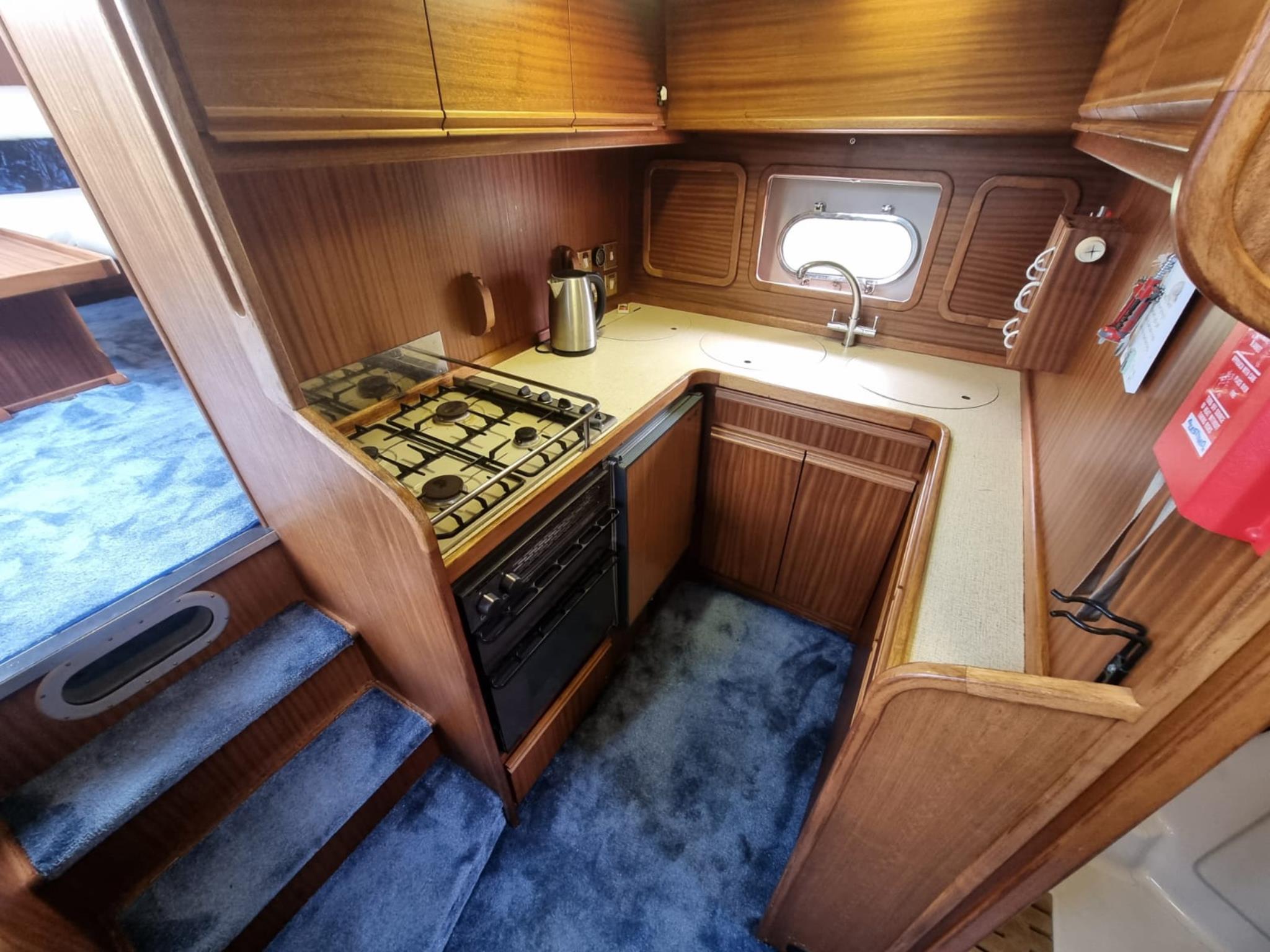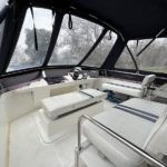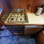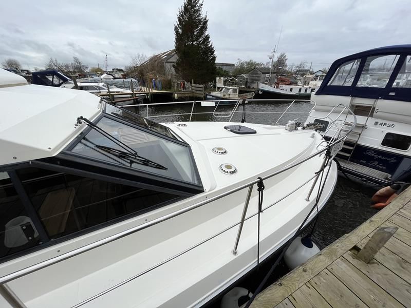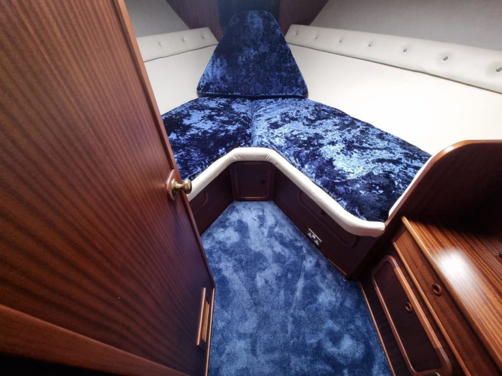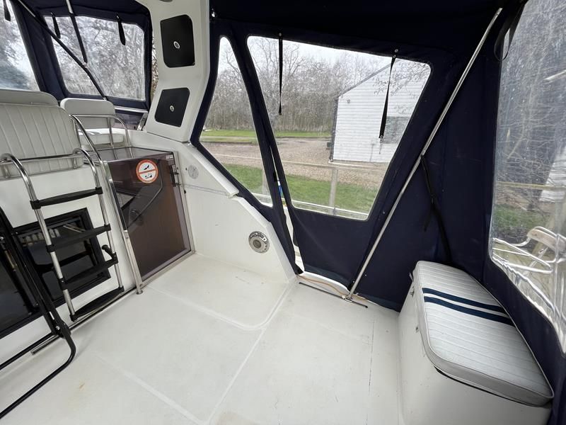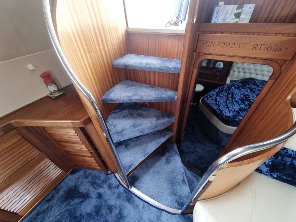 BROOM OCEAN 40 – 1987 – 2 x Ford Sabre 212hp diesel engines. 6 berth accommodation with two toilets and two showers. Specification includes electric windlass, folding radar arch, Eberspacher warm air heating, shore power supply with battery charger, 240v sockets and immersion, Raymarine A series plotter, VHF, 18″ Raydome, and autopilot. Fully equipped galley including; 4 burner hob, oven and grill. One of Broom’s rare flybridge models, a sought after combination of an aft cabin and raised steering position, providing excellent visibility when cruising. Just reduced!
