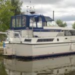 BROOM OCEAN 42 – 1987 – Twin Volvo TAMD 61C 306HP Diesel engines. 6 berths with 2 toilets to a holding tank and 2 showers. Bowthruster, Trim tabs, Generator, Shore power, Battery charger, Warm air heating system. BSSC until 2017. A spacious cruiser designed for comfortable family cruising and suitable for both coastal and inland use. Recently polished, antifouled and propellers and shafts cleaned.
