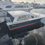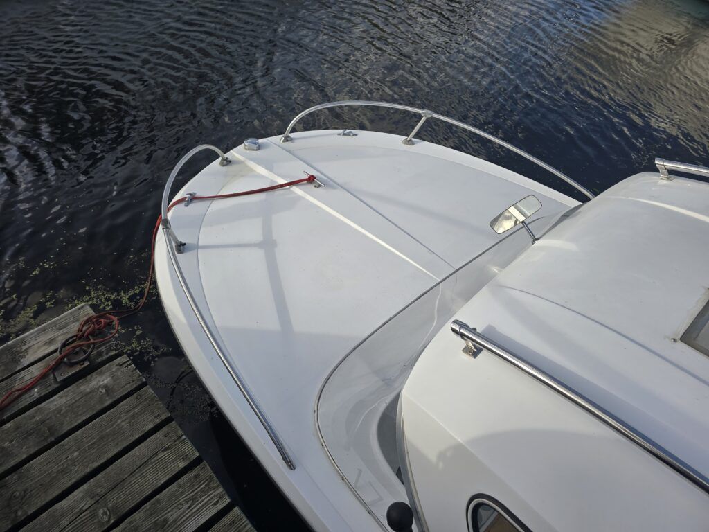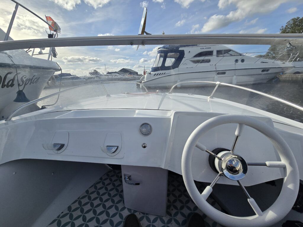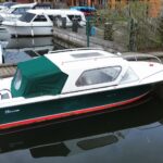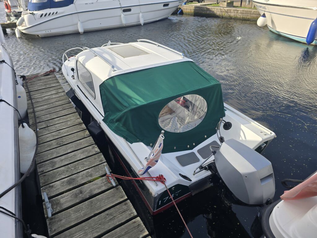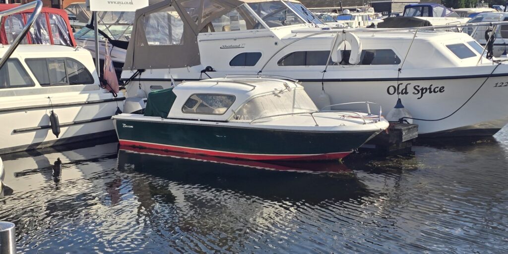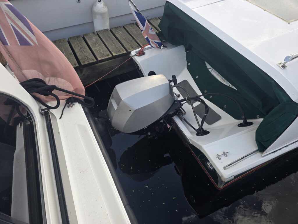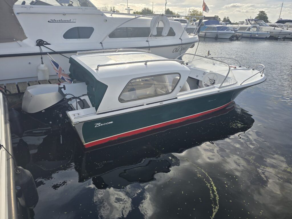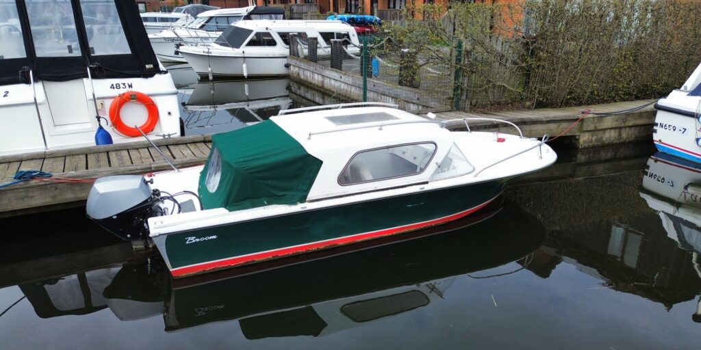 Broom Scorpio – 1975 – Powered by a Mercury F15EL, 15hp FourStroke, electric start outboard (New in 2020). Refurbished 2021. A popular and practical day cruiser, featuring a hassle-free sliding roof, generous aft space, and comfortable helm and navigator seats. This clean and tidy example would make an excellent addition to any waterside property and is easily trailerable.