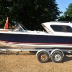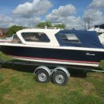 BROOM SCORPIO – Built in 1989, powered by a single Yamaha 9.9Hp Four Stroke outboard petrol engine, including a road trailer, oar, fenders, canopy, sliding/removable roof, beautifully finished teak trim on forward deck, painted, compounded, polished and varnished 2012. A truly stunning example of this rare day/speed boat!!