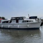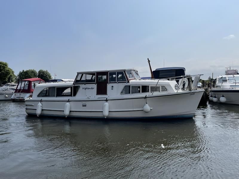 BROOM SKIPPER 30 – 1978 – Powered by a single diesel 38 hp Nanni engine through a shaft. 4 berth accommodation in 2 cabins with one toilet and shower. Specification to include, warm air heating, holding tank, shore power supply with immersion, battery charger and 240v sockets. Folding screens for much reduced air draft and increased inland access. Extensive renovation work over the years making a beautiful example of this traditional broads cruiser. Presented in fantastic order, viewing highly recommended!