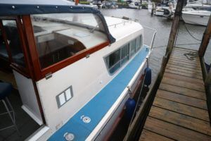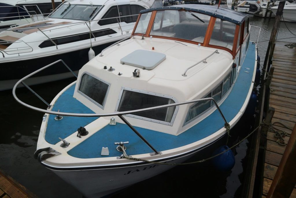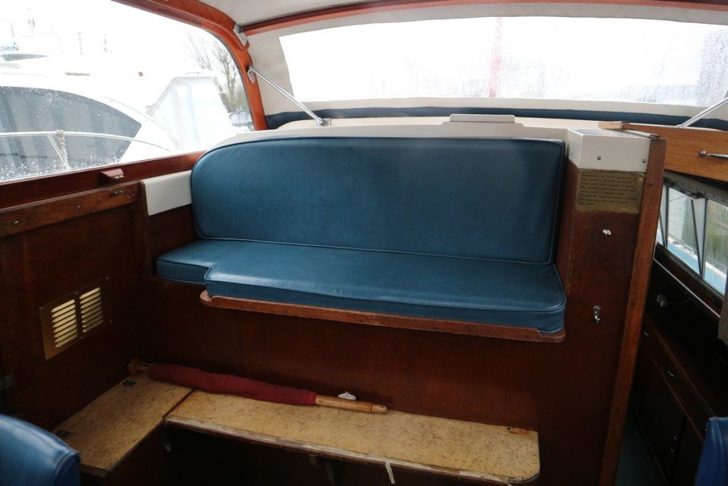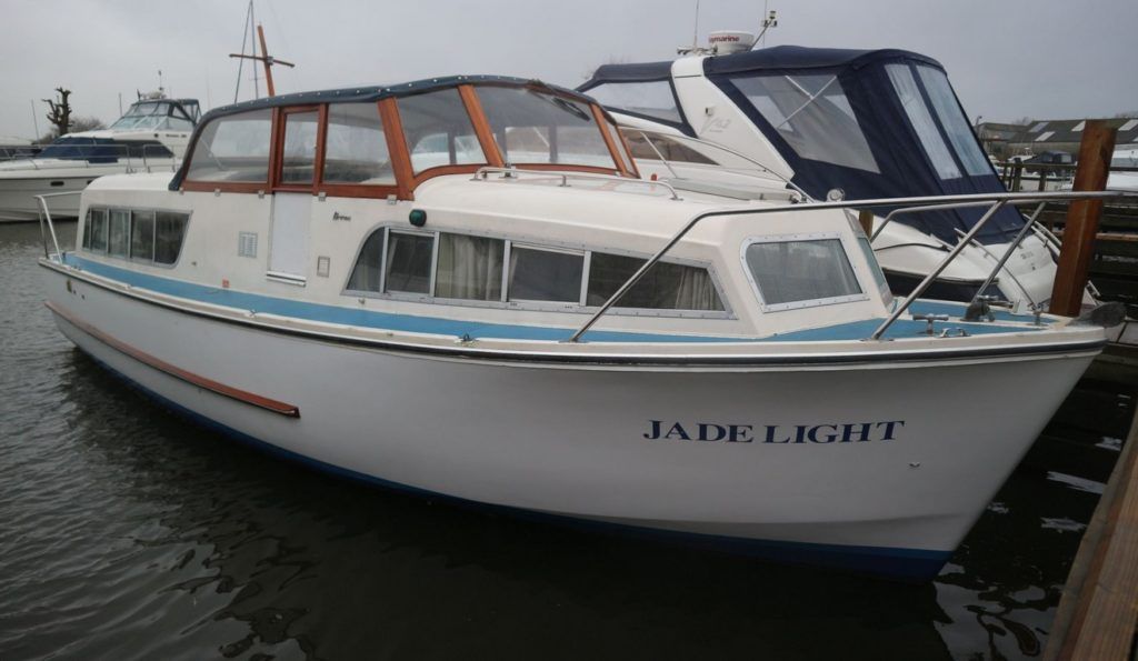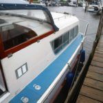 BROOM SKIPPER 30 – 1969 – Powered by a single Perkins 4107 diesel. 4 berth accommodation with 1 toilet and shower. Features including, holding tank, removable canvas and folding screens to reduce the air draft allowing for great access across The Broads. A vintage Broom cruiser, in current ownership since 1994 and cruised on the Thames.
