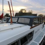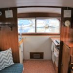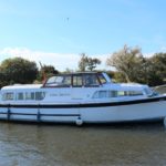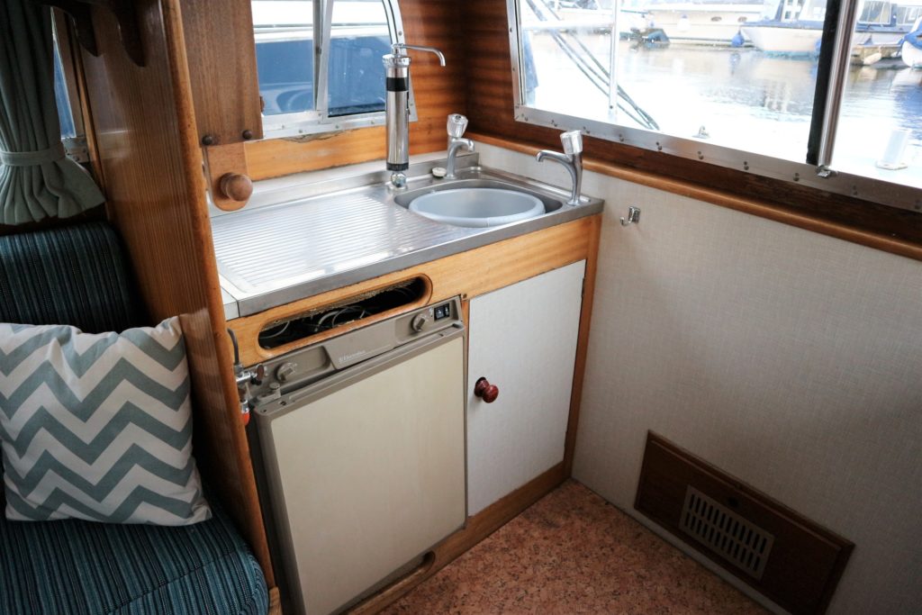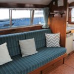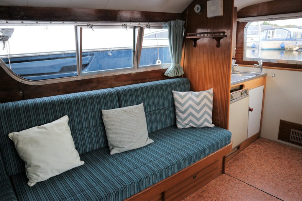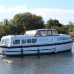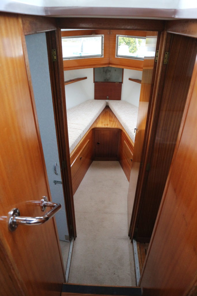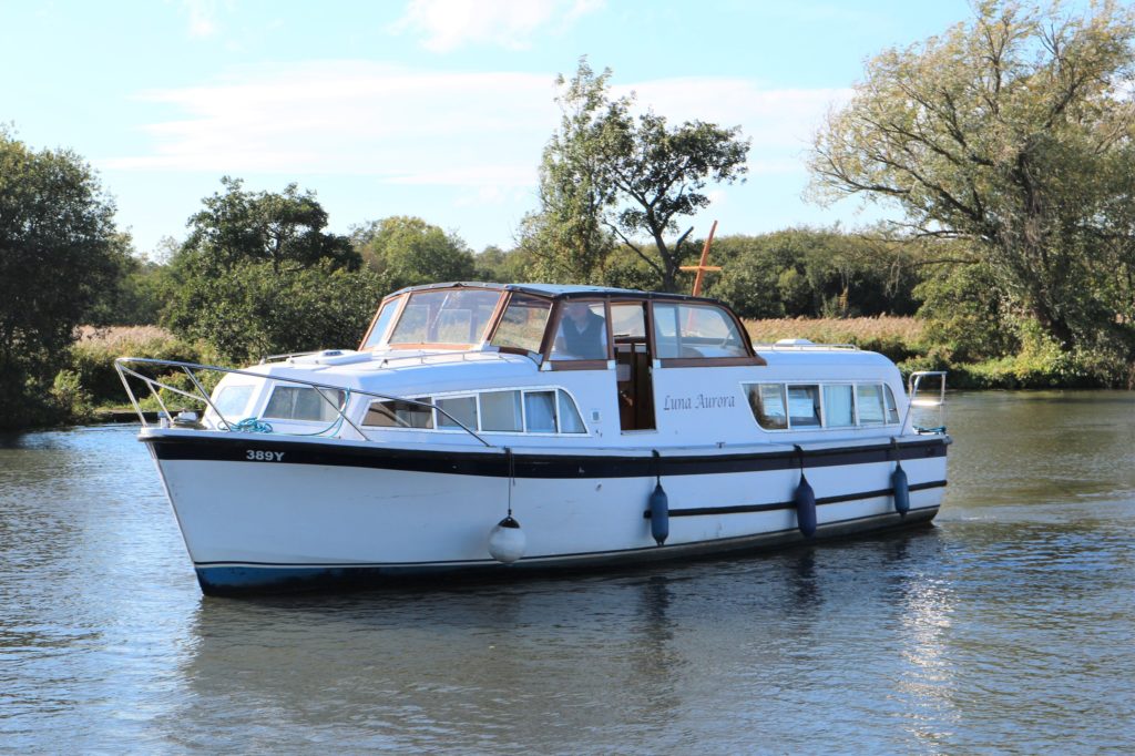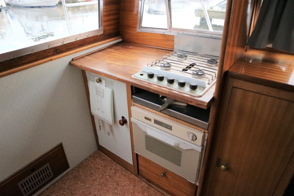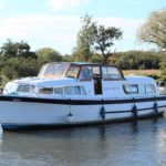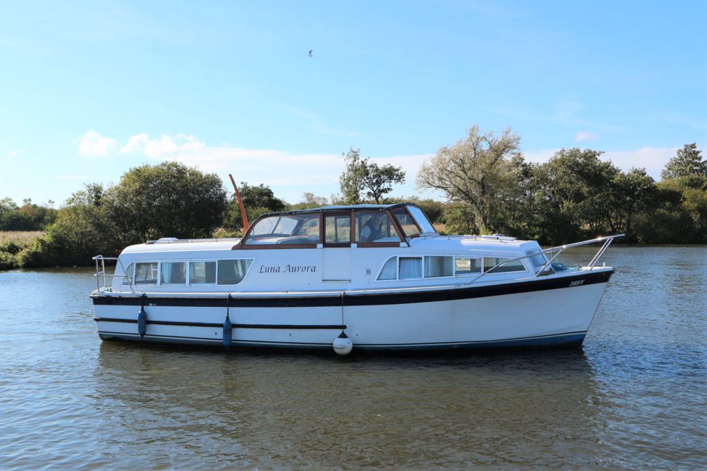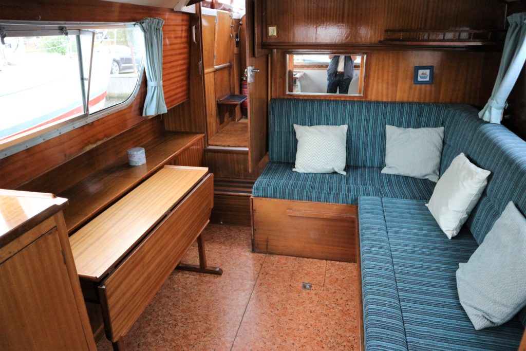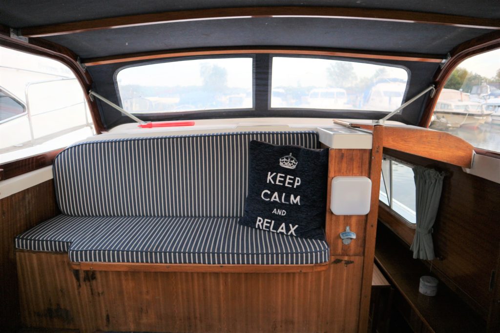 BROOM SKIPPER – Circa 1977 – 1 x Perkins 4.108 48hp Diesel Engine. 4 berth accommodation over forward cabin and spacious saloon with separate toilet and shower compartments. Galley with fridge, 4 burner hob, oven and grill. Benefiting from an engine overhaul in 2017. All over cover. Fitted with a bow thruster for ease of handling and folding wheelhouse screens offering a low air draft for exploring further afield.