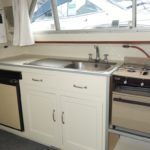 CALYPSO 28 – 1978 – Single Yanmar 14HP diesel engine. 4 berths with 1 toilet to holding tank and 1 shower. Battery charger, Shore power, Mudweight, Automatic bilge pump, reversing camera. BSSC until March 2018. Low airdraft giving excellent access to the inland waterways.
