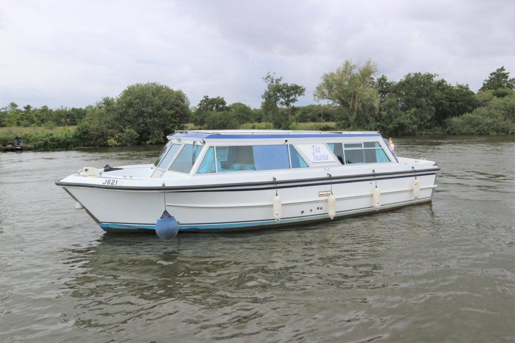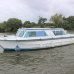 CALYPSO 28 – 1975 – Nanni N.4.43 (43hp) diesel engine (fitted 2008). 4 berth accommodation with electric toilet & bath/shower compartment. Galley with 2 ring hob, oven & fridge. High specification including bow thruster, electric windlass, shore power, battery charger, inverter, immersion heater, warm air heating, transom door, reversing camera. New boat safety expires May 2024. A host of recent improvements and upgrades under her current ownership making her a very special example of these popular river cruisers.