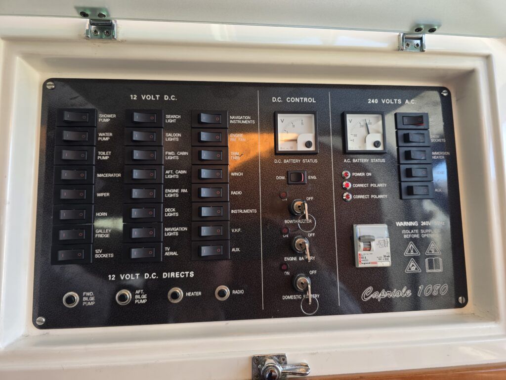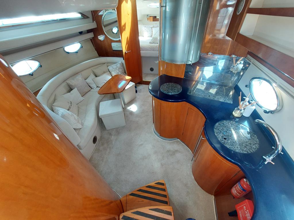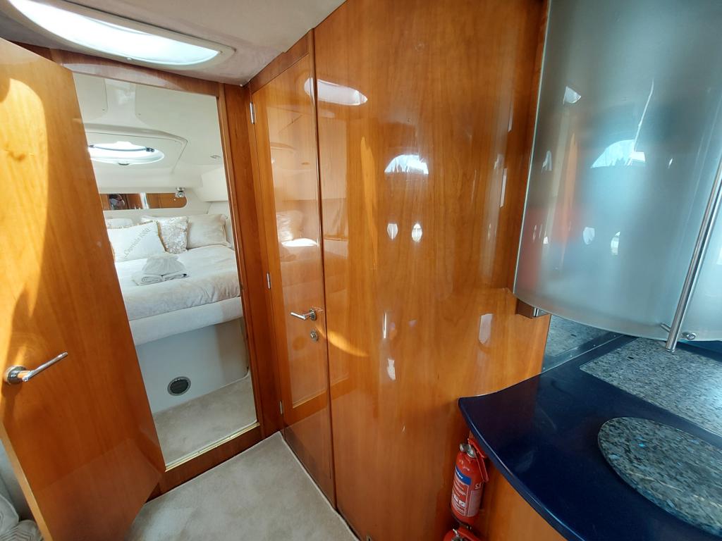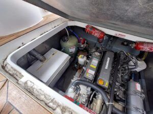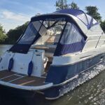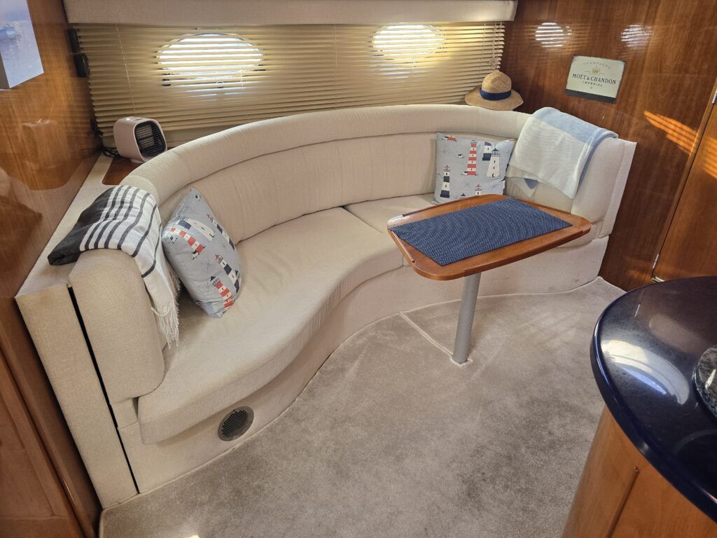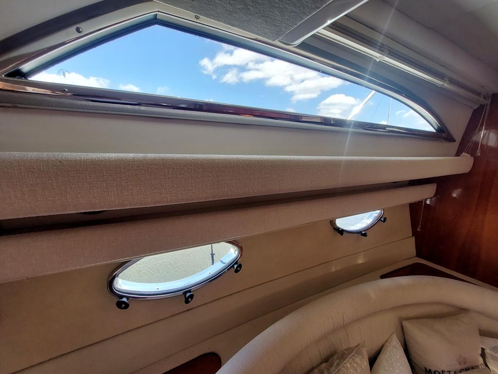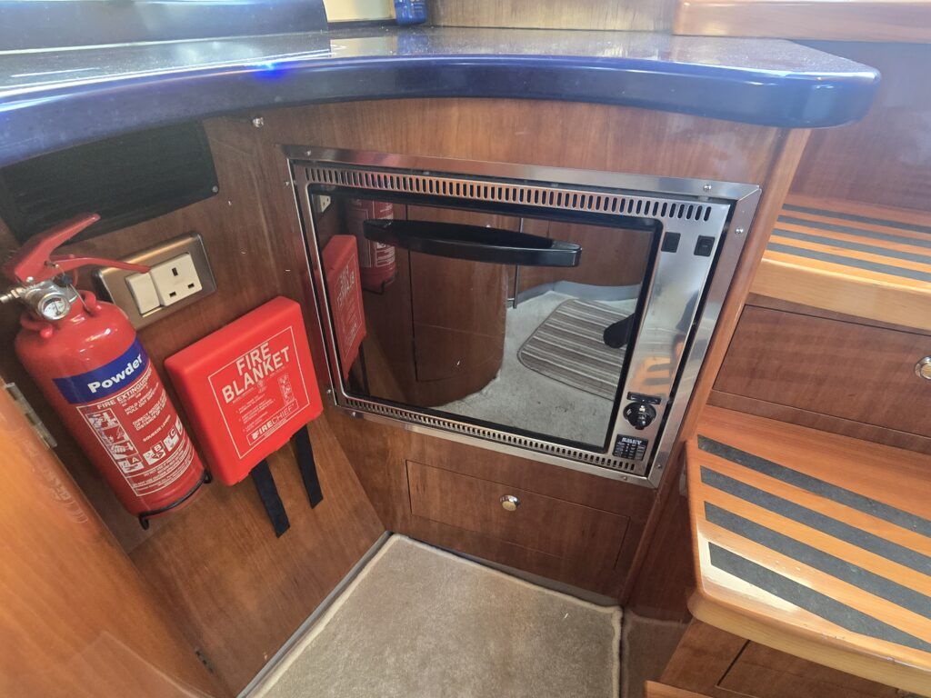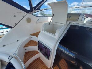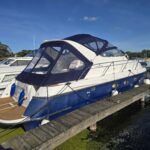 Capriole 1080 – 2002 – Powered by a Yanmar 4LHA-STP 240hp diesel engine on a shaft. 4 berth accommodation with a large island double master cabin, ensuite toilet and shower compartment and double guest cabin. Well specified including; bow & stern thrusters, electric windlass, warm air heating, folding radar arch, chart plotter, holding tank, teak cockpit and more. Serviced, polished and antifouled 2025. A sought-after single-diesel sports cruiser, well presented and boasting a high specification for river cruising whilst also offering coastal capabilities. Early viewing highly recommended