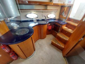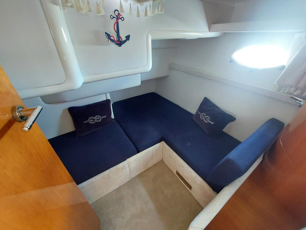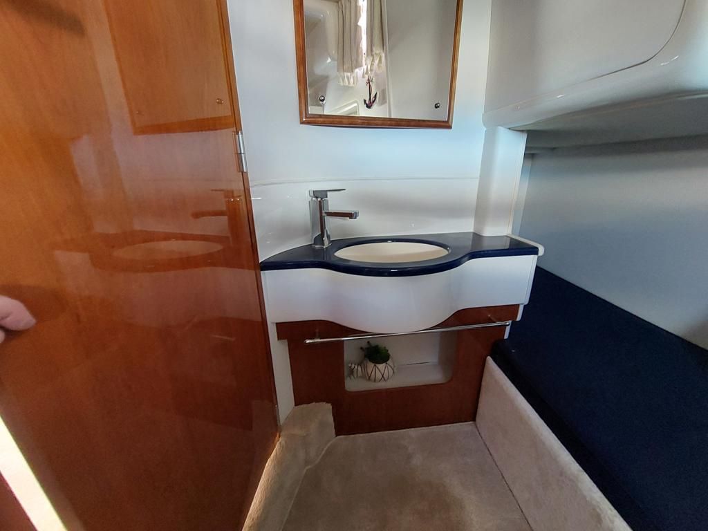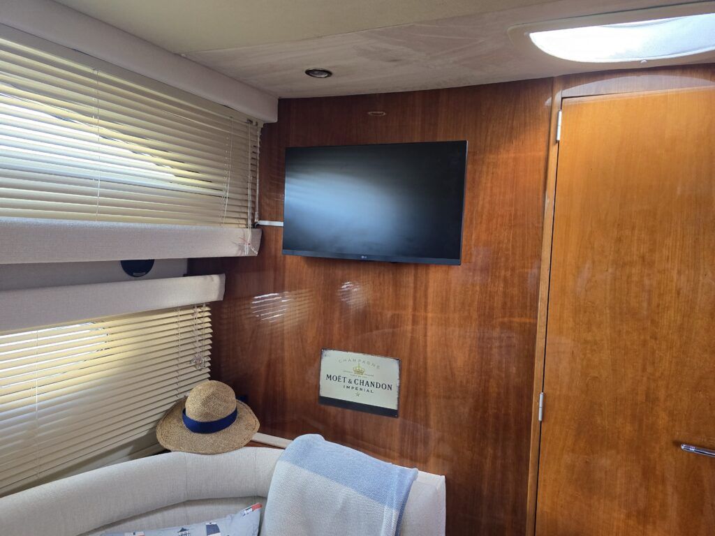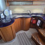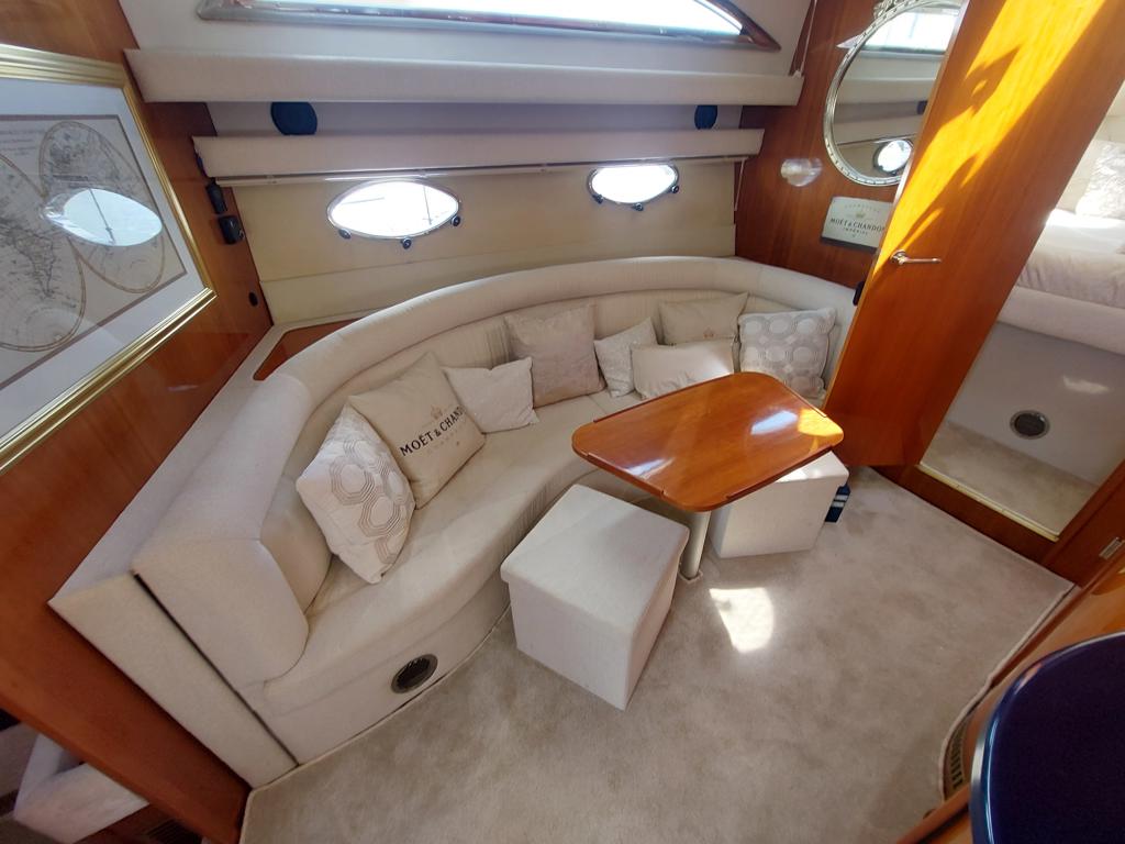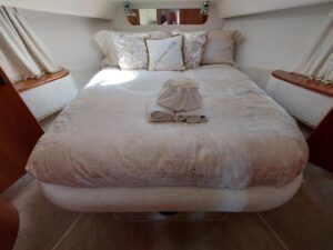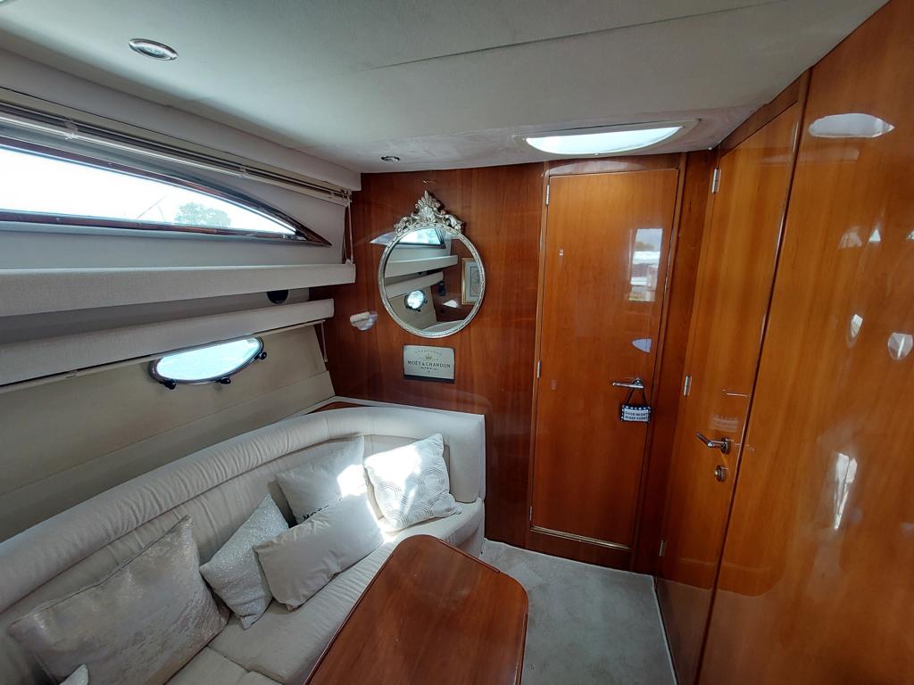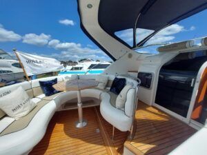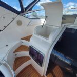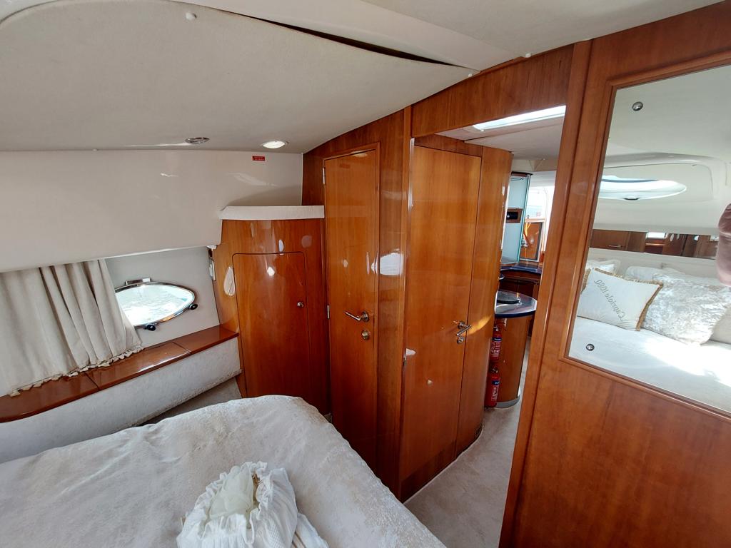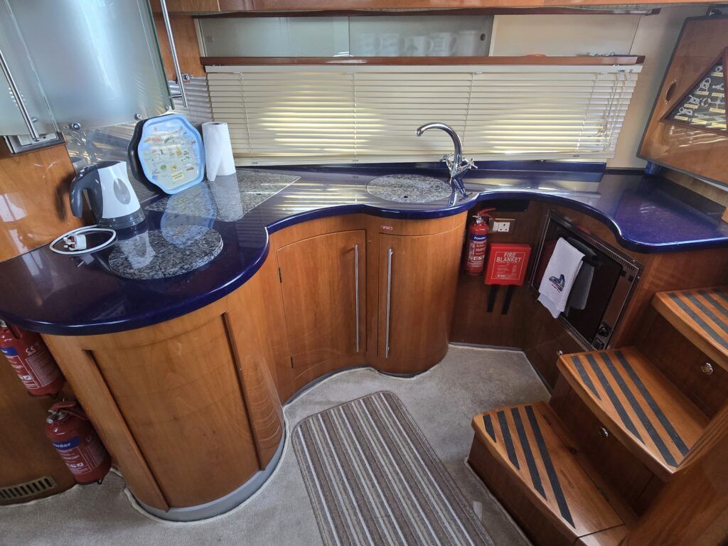 Capriole 1080 – 2002 – Powered by a Yanmar 4LHA-STP 240hp diesel engine on a shaft. 4 berth accommodation with a large island double master cabin, ensuite toilet and shower compartment and double guest cabin. Well specified including; bow & stern thrusters, electric windlass, warm air heating, folding radar arch, chart plotter, holding tank, teak cockpit and more. Serviced, polished and antifouled 2025. A sought-after single-diesel sports cruiser, well presented and boasting a high specification for river cruising whilst also offering coastal capabilities. Early viewing highly recommended