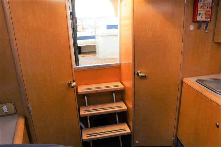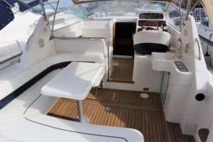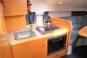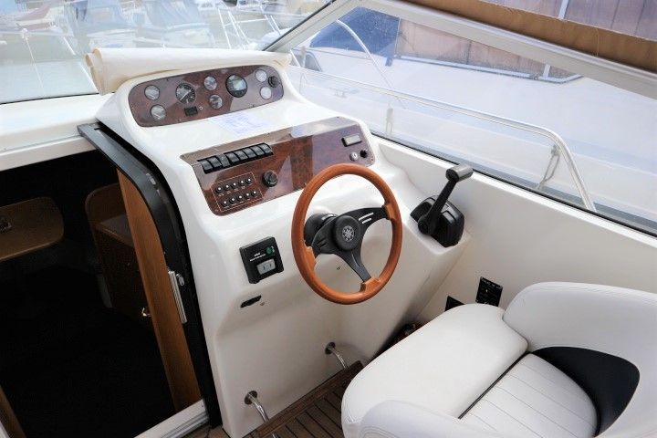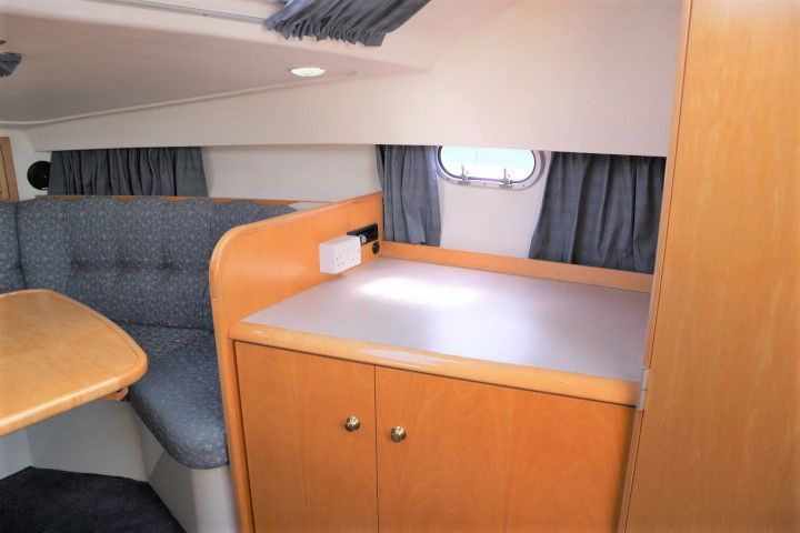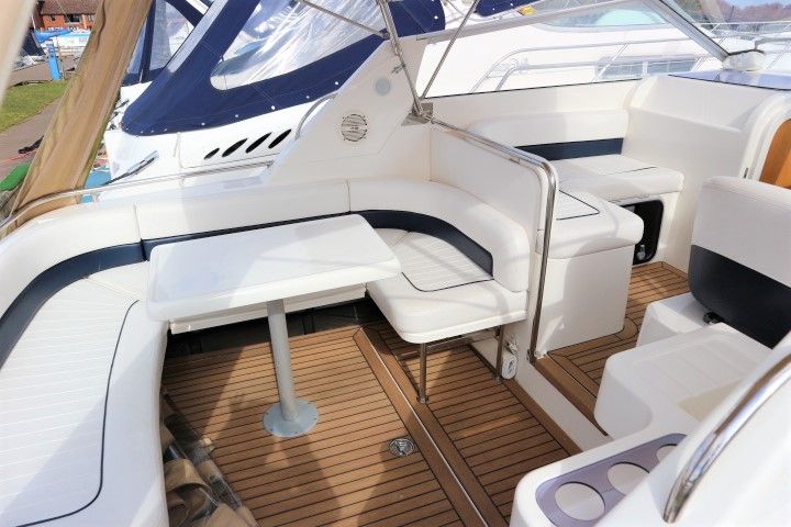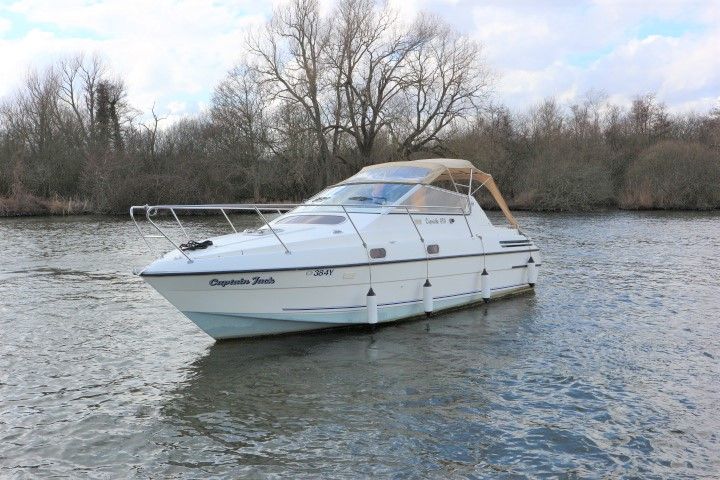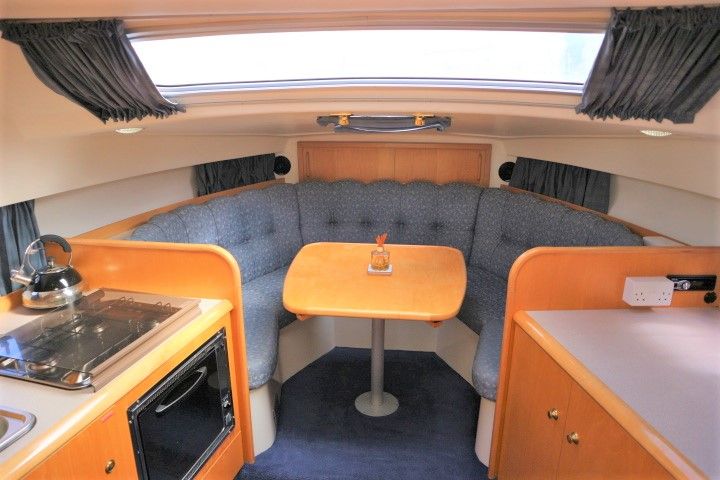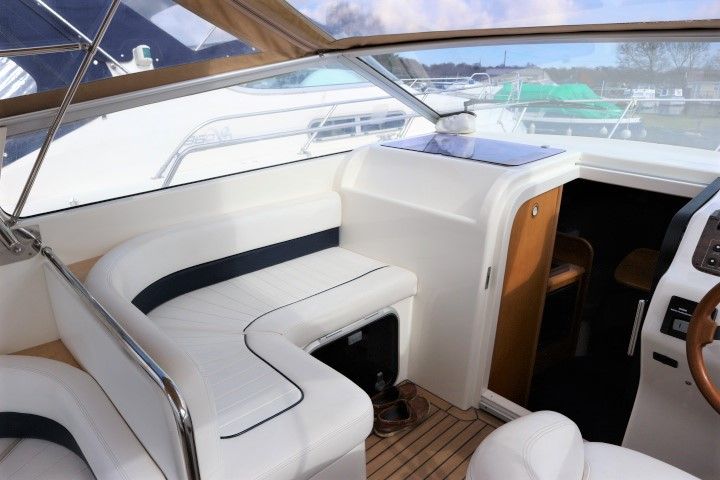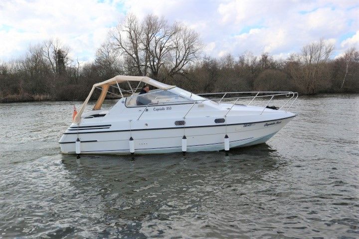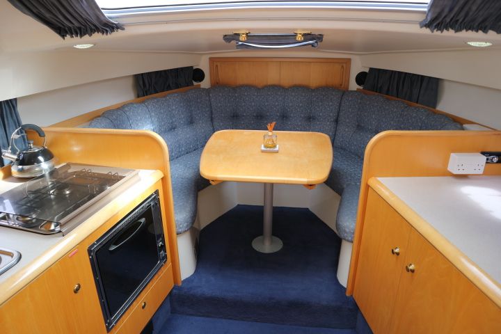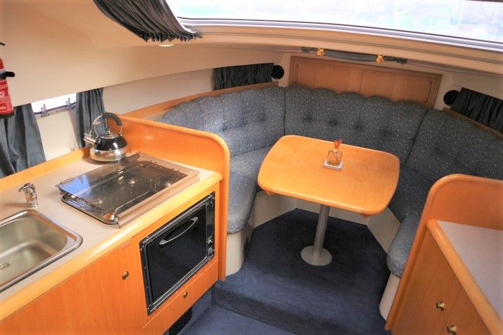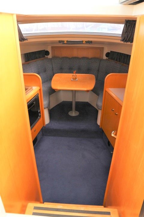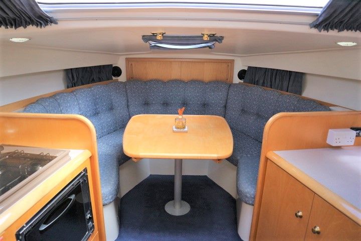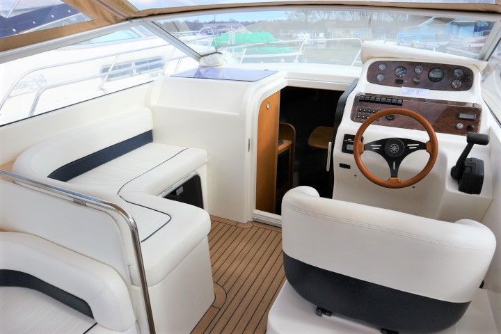 CAPRIOLE 850 – 1999 – 1 x Nanni 4.200 HE 43hp diesel engine. 4 berth accommodation in one cabin and Saloon with 1 x toilet/shower compartment. Spec including Bow thruster, shore power, battery charger, immersion heater, warm air heating to cabin and cockpit, speed & depth log, Synthetic Teak laid cockpit & bathing platform. Large cockpit with generous seating & wet bar with second fridge. BSC 11/19. An attractive sports style river cruiser with diesel economy and very sociable layout.