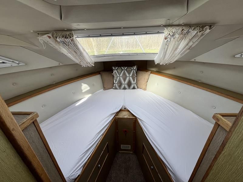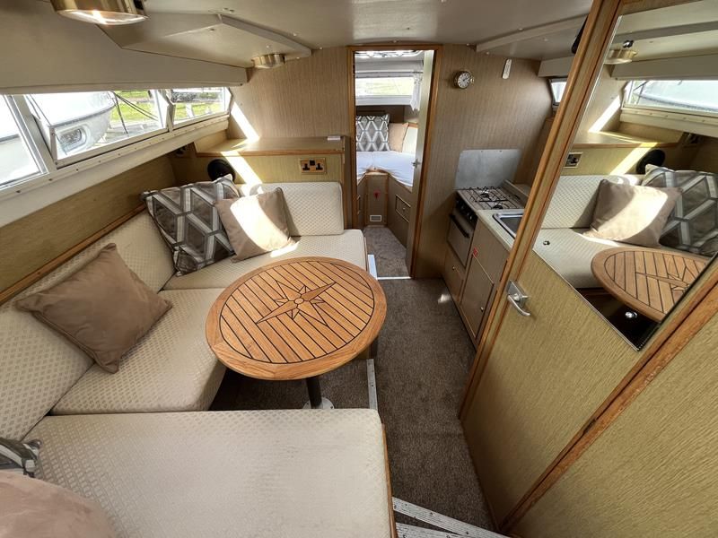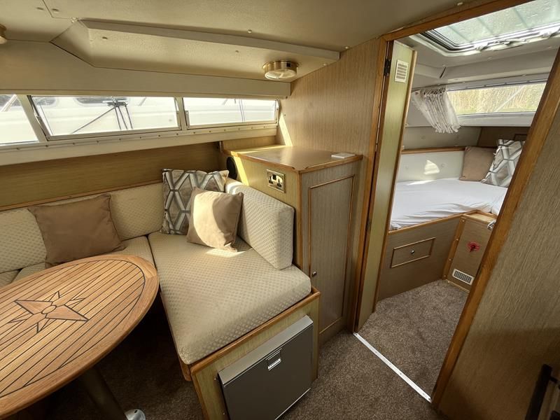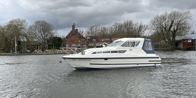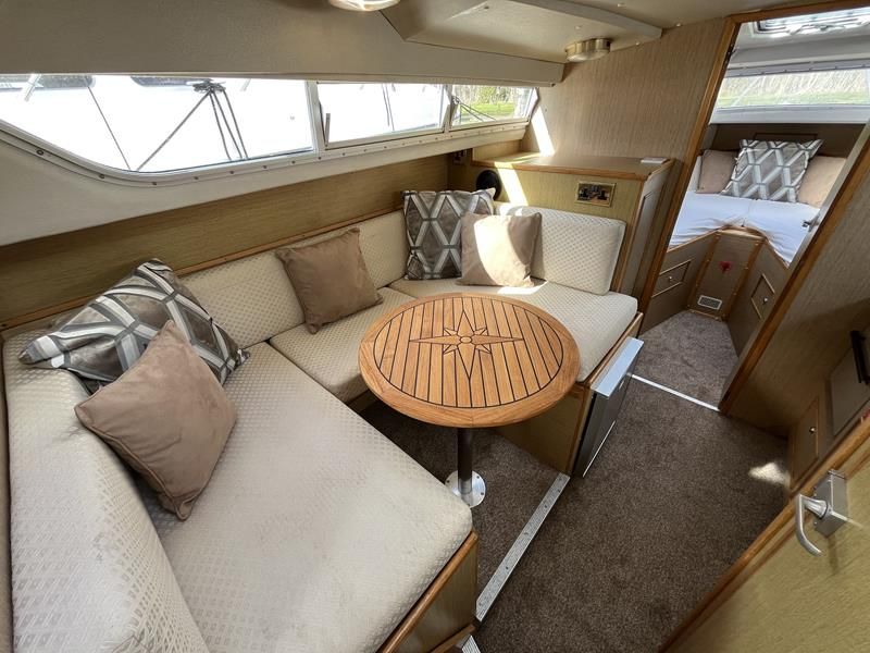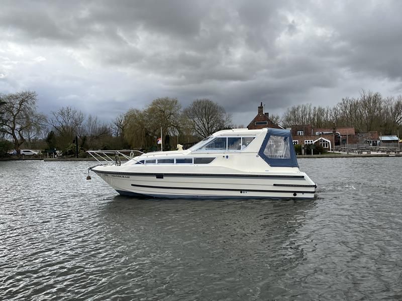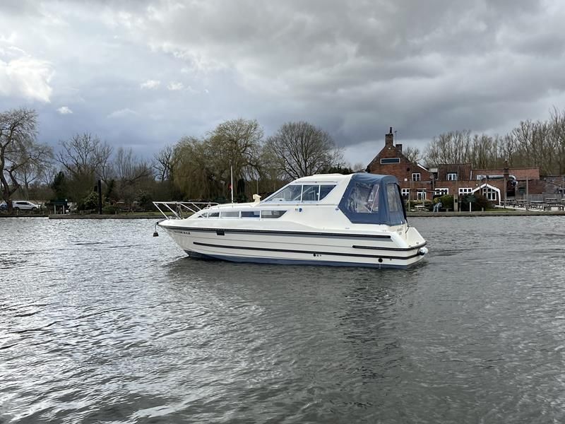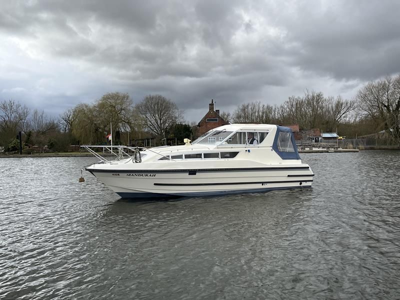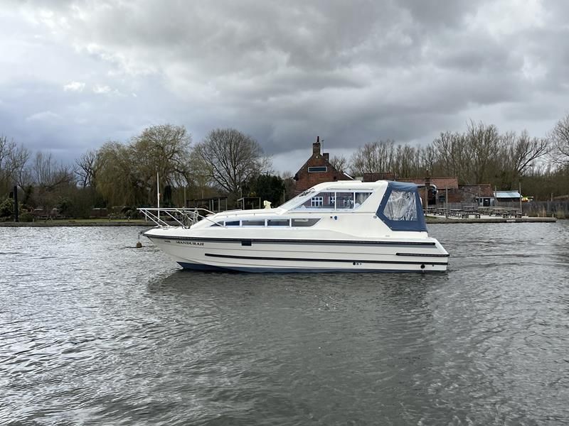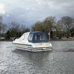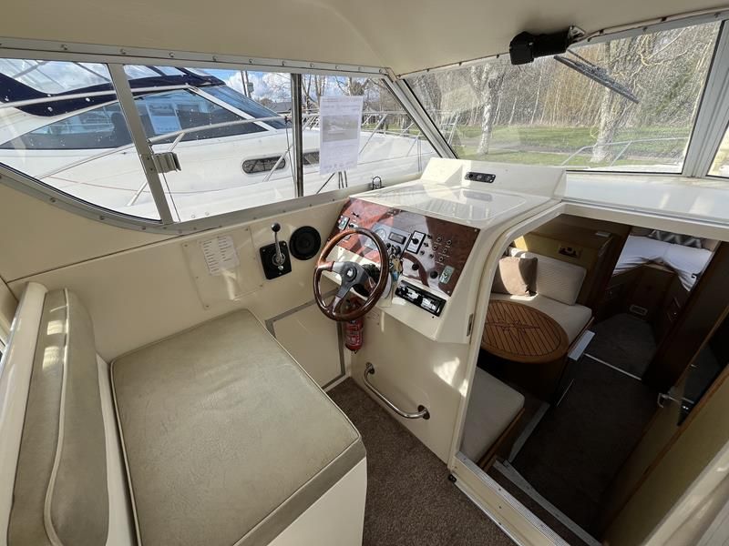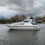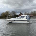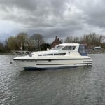 Bounty Capriole 27 Sedan – 1995 – Fitted out by Moores & Co of Wroxham. Powered by a Nanni 4.150HE 37.5hp diesel engine through shaft. 4 berth accommodation with 1 toilet and shower. A generous specification including bow thruster, warm air heating, inverter, shore power, battery charger, electric windlass, BSC 03/26. A well-kept and sought after Sedan style river cruiser based on the now Sheerline 820. NYA Stock – Sold with 3 months engine & gearbox warranty.