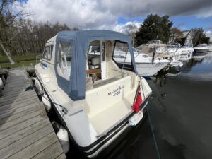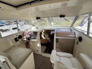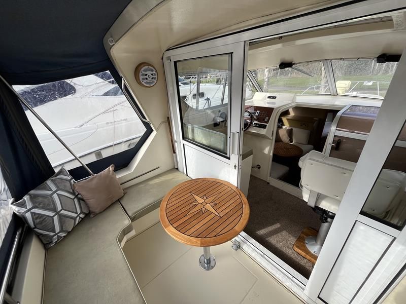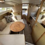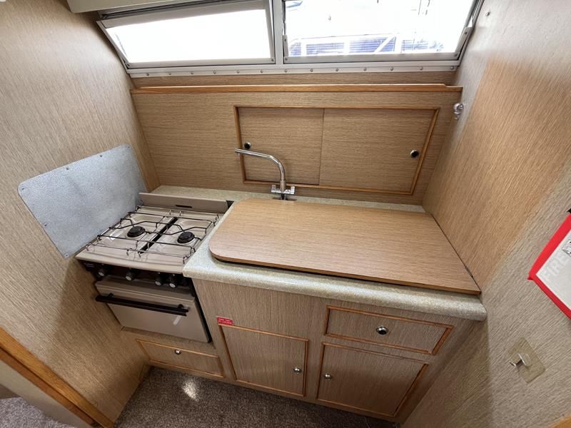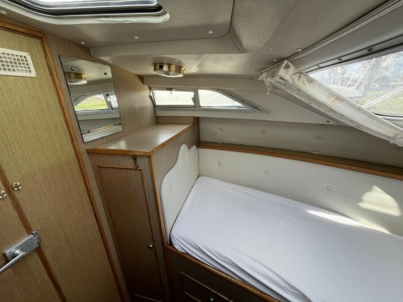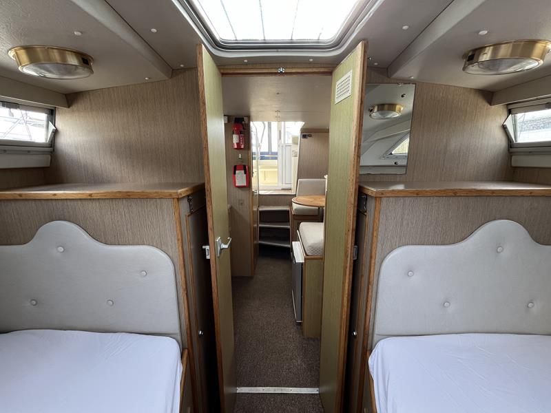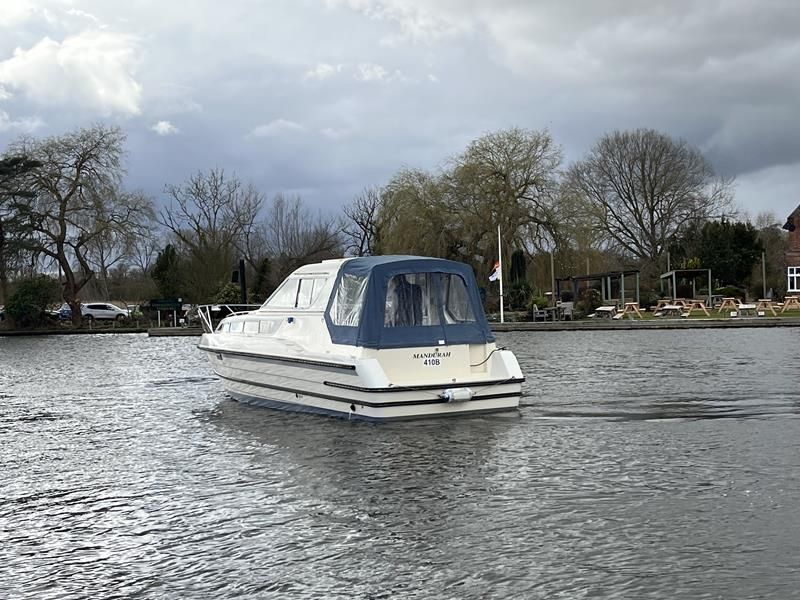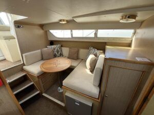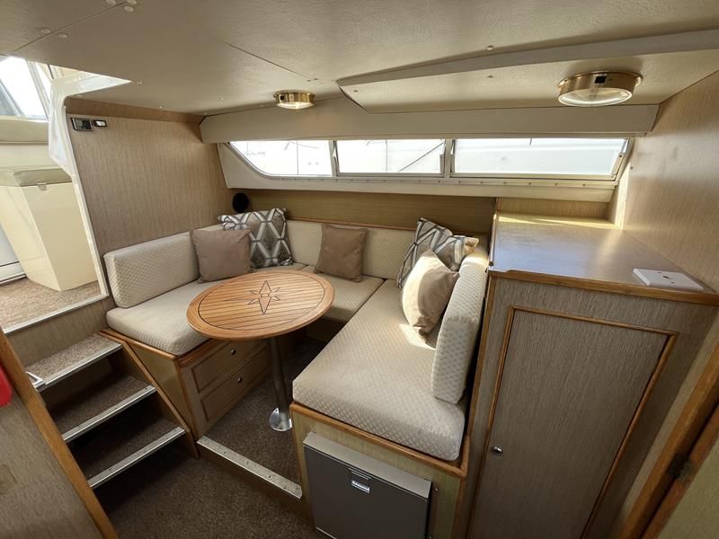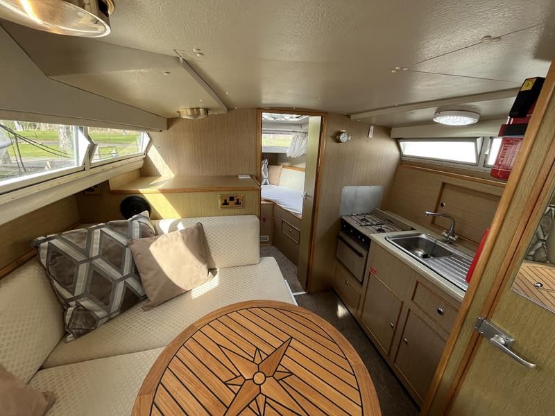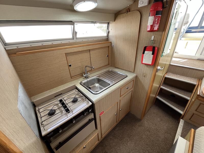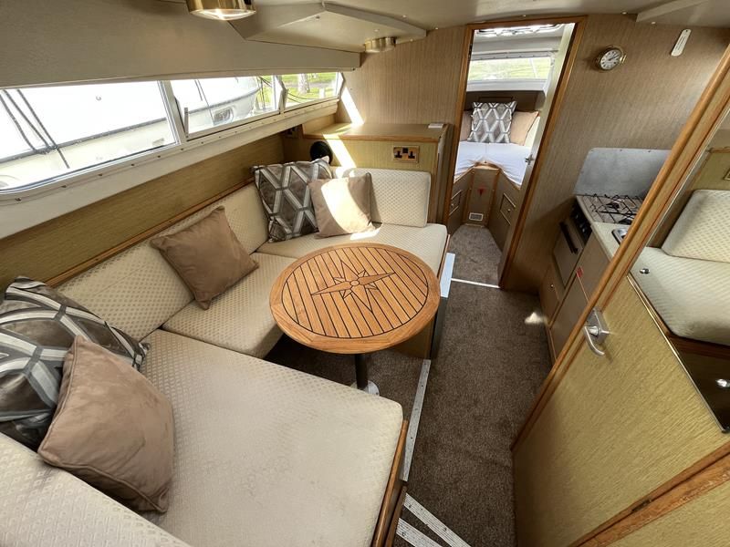 Bounty Capriole 27 Sedan – 1995 – Fitted out by Moores & Co of Wroxham. Powered by a Nanni 4.150HE 37.5hp diesel engine through shaft. 4 berth accommodation with 1 toilet and shower. A generous specification including bow thruster, warm air heating, inverter, shore power, battery charger, electric windlass, BSC 03/26. A well-kept and sought after Sedan style river cruiser based on the now Sheerline 820. NYA Stock – Sold with 3 months engine & gearbox warranty.