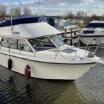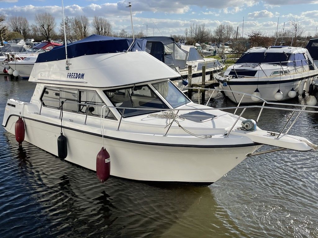 CARVER 26 – Circa. 1991 – Powered by twin Volvo AD31B 150hps diesels just had a full engine and drive service. 5 berth accommodation with one toilet and one shower. Spec includes; Trim tabs, shore power with 240v sockets and battery charger, Lowrance 3300c, autohelm tri-data and galley facilities, new carpets throughout, new tonneau cover, new cockpit and flybridge upholstery. Sought after diesel economy, ideal introduction into offshore boating! NYA Stock benefitting from a hull and superstructure compound and polish and antifoul. 3 month major mechanical failure warranty on engines and gearboxes!
