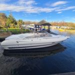 Cranchi Turchese 24 – 1999 – Volvo Penta 5.0Gi 225 HP V8 Petrol engine on Sterndrive , 2 berth accommodation, shore power, battery charger, trim tabs, anchor winch, portaloo toilet, cockpit sink with cold water tap, fridge, tonneau cover, boat safety until December 2023, a spacious cockpit makes this a great social and entertaining sports boat with overnight capability.