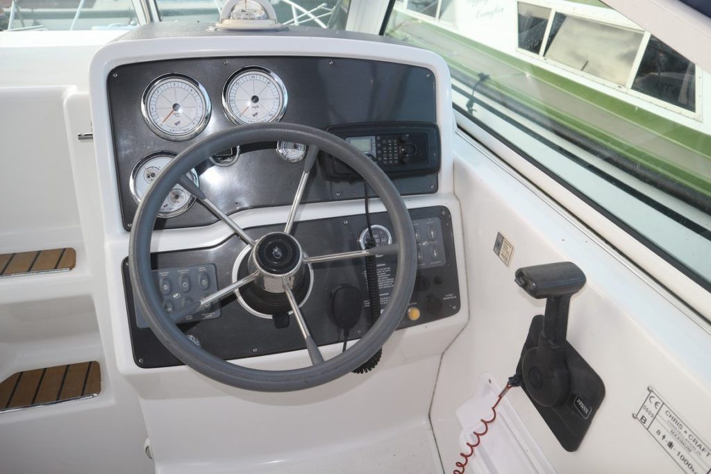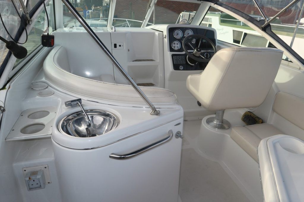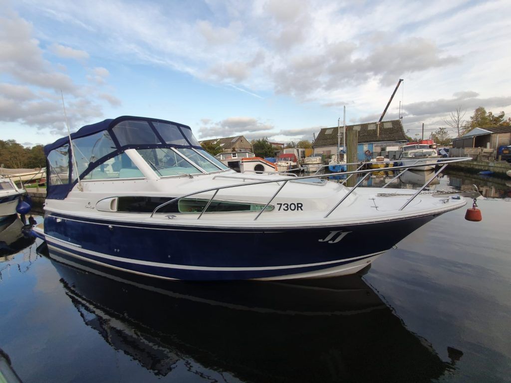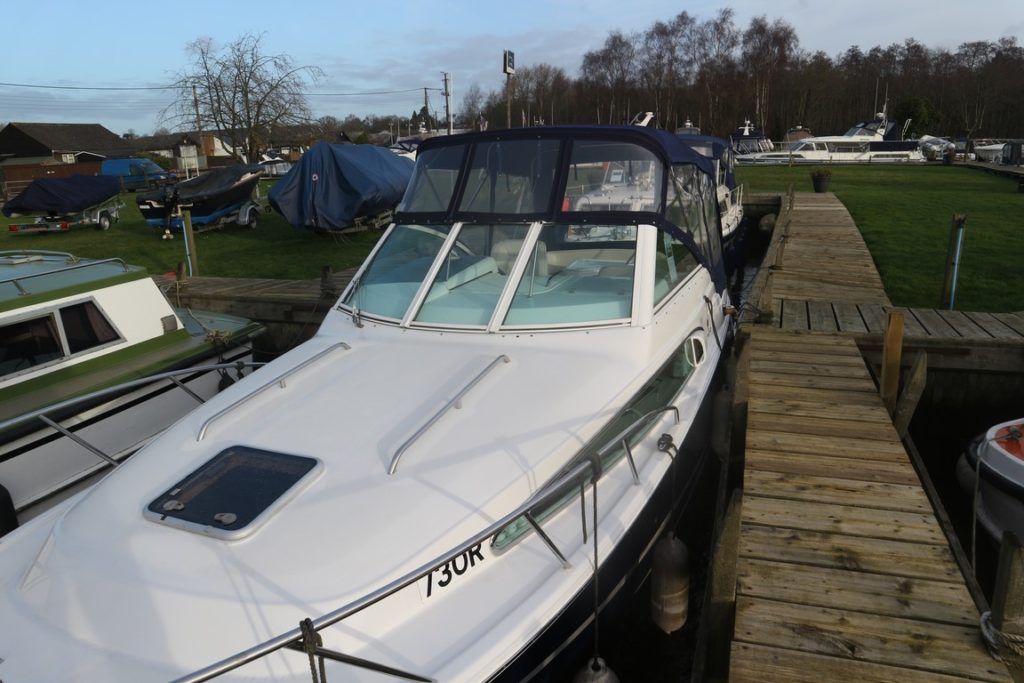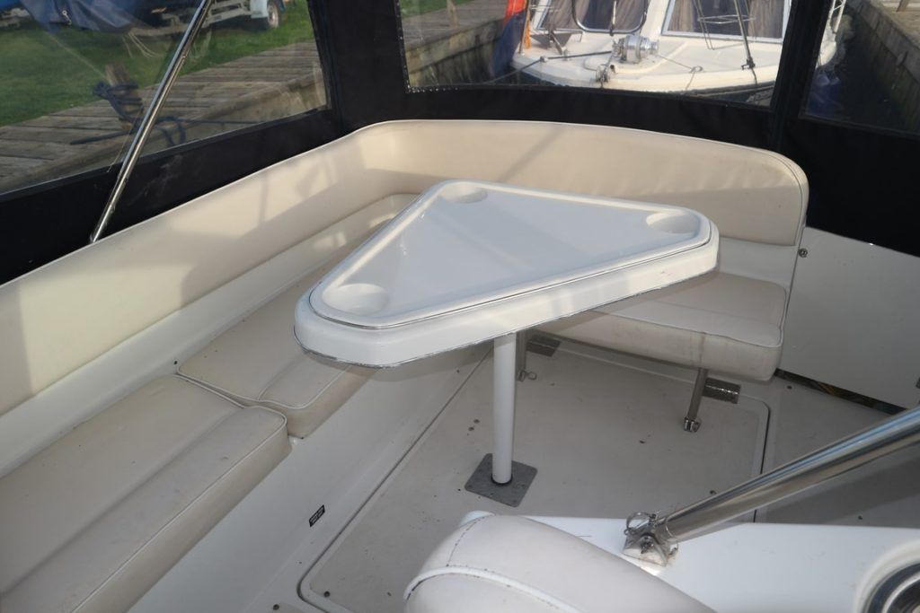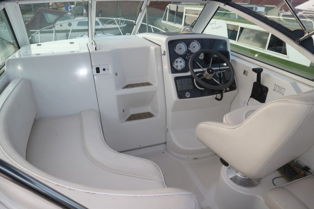 CHRIS CRAFT 26 CONSTELLATION – 2000 – Powered by a single Volvo 5.7 GSi 280hp petrol. 4 berth accommodation with toilet and shower. Specification to include; Trim tabs, holding tank, VHF, galley facilities including, hob sink and refrigerator and shore power supply with 240v sockets and battery charger. Folding canopy and framework for reduced air draft. New canopy 2018 and recent engine and sterndrive service! A stylish sports cruiser.