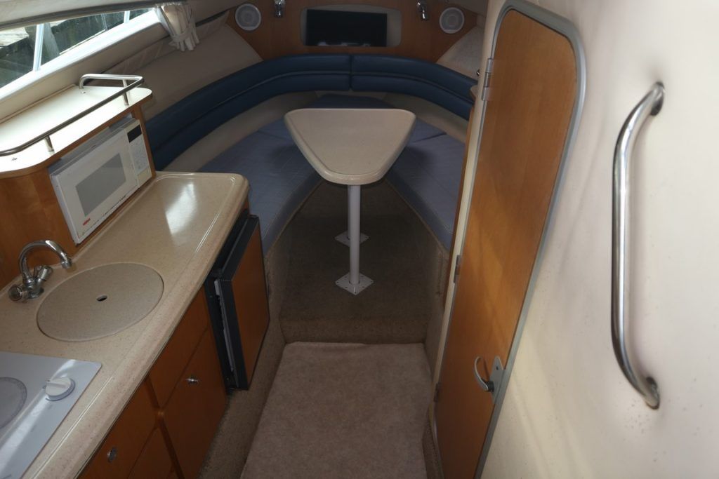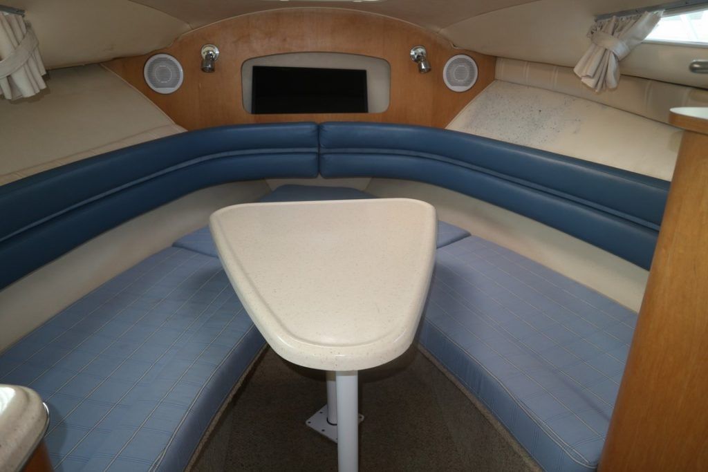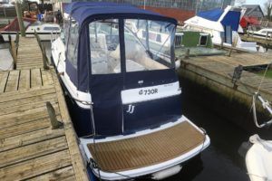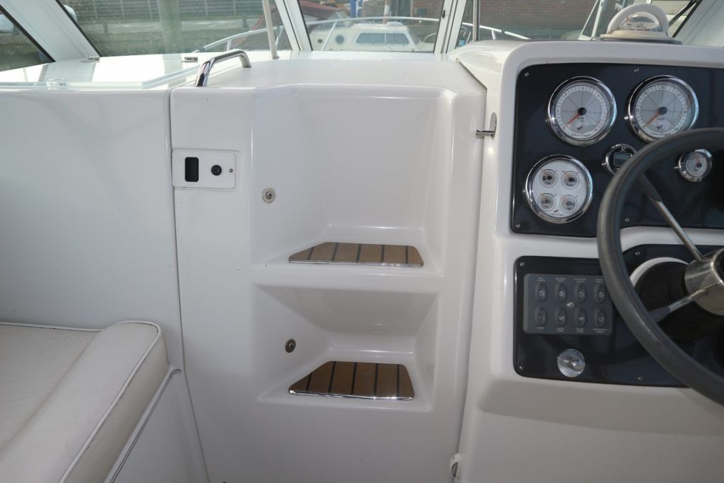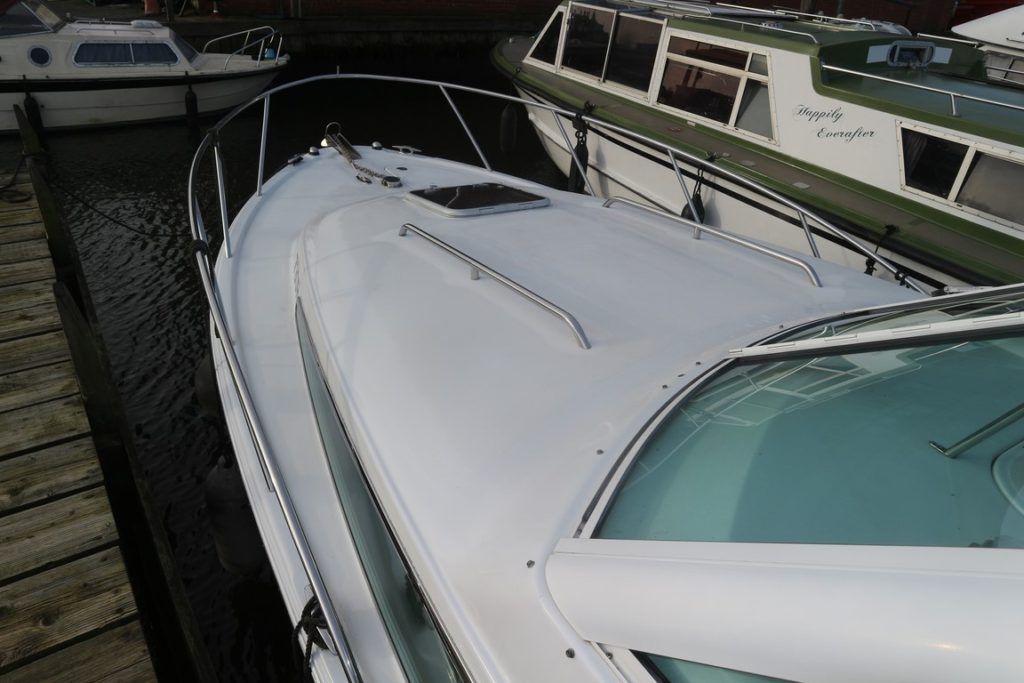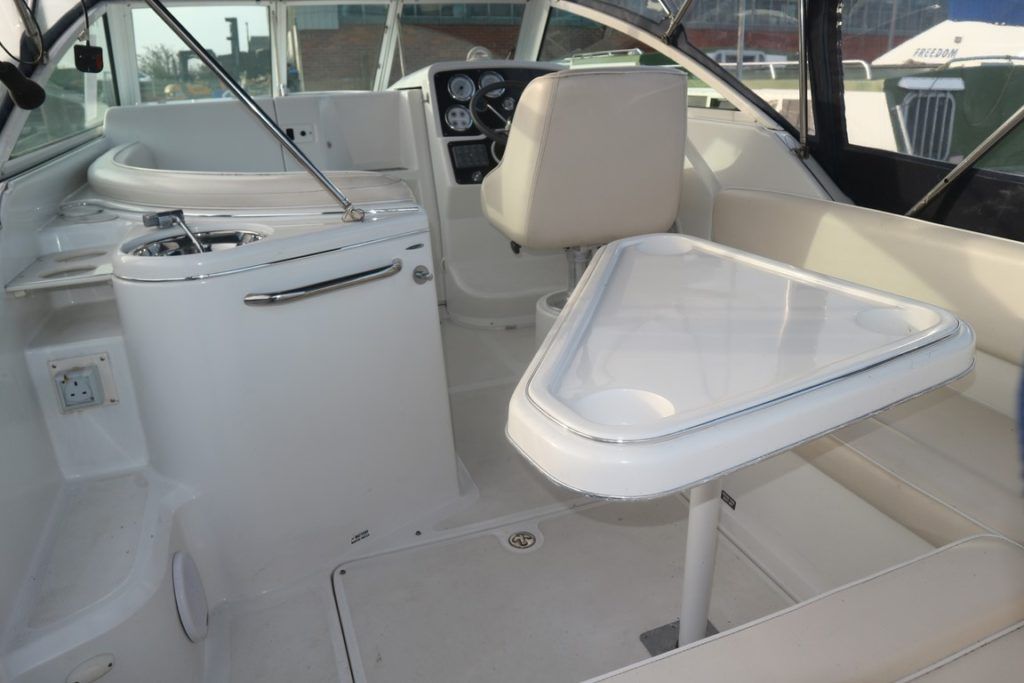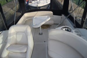 CHRIS CRAFT 26 CONSTELLATION – 2000 – Powered by a single Volvo 5.7 GSi 280hp petrol. 4 berth accommodation with toilet and shower. Specification to include; Trim tabs, holding tank, VHF, galley facilities including, hob sink and refrigerator and shore power supply with 240v sockets and battery charger. Folding canopy and framework for reduced air draft. New canopy 2018 and recent engine and sterndrive service! A stylish sports cruiser.