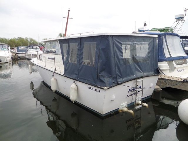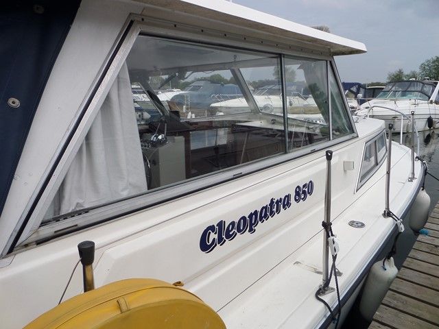 CLEOPATRA 850 – 1973, 2 x Ford 75Hp diesel engines, 4 berths in 1 cabin (plus 2 in cockpit), 1 x toilet, Boat Safety Certificate. Spec including: deck cushions, shore power, holding tank, hard top with aft canopy. She was completely re-furbished in 2007…well worth a look!
