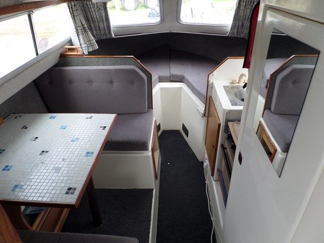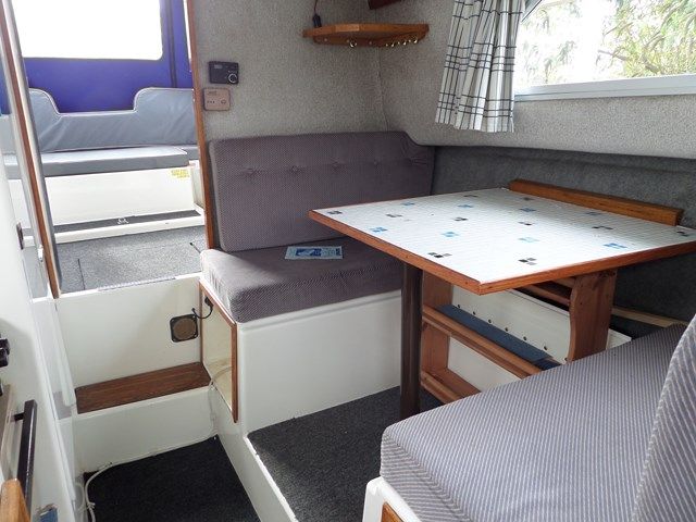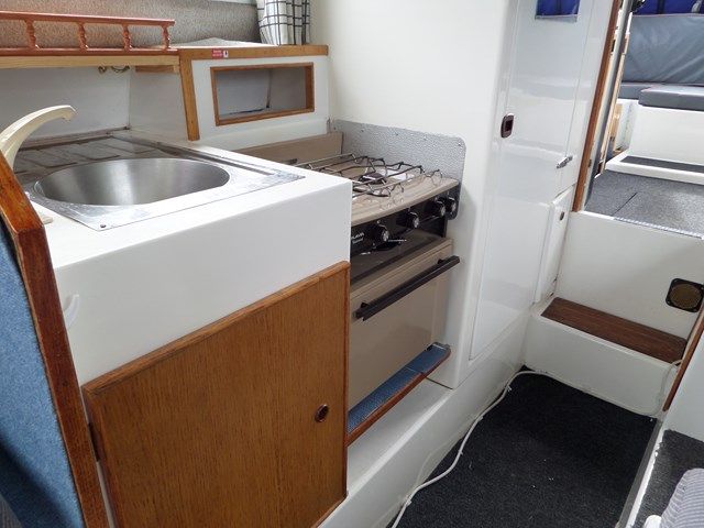 COLIN FACEY 21 – 1 x Yanmar 1GM10 8Hp diesel engine, 4 berths in 1 open plan cabin, 1 x electric toilet & shower, Boat Safety Certificate until: 2017. Shore power, 12v battery charger, holding tank, 2 x ring gas hob, oven & grill, hot water system, fridge, folding windscreens, aft canopy and more! Would make a great starter boat with the added benefit of having a small economical diesel engine. AS TRADED IN.