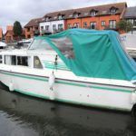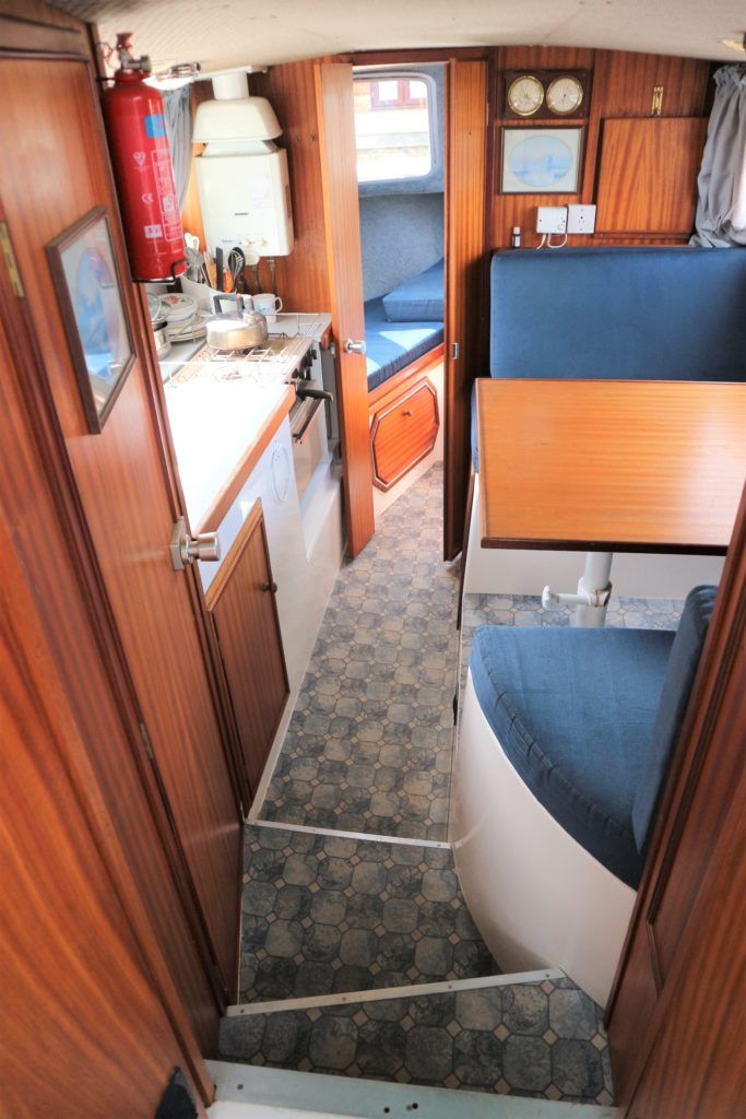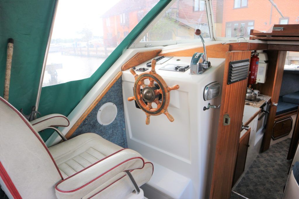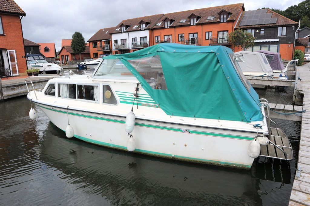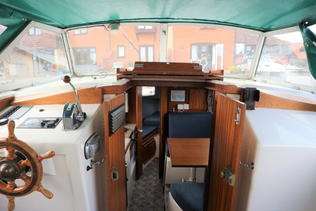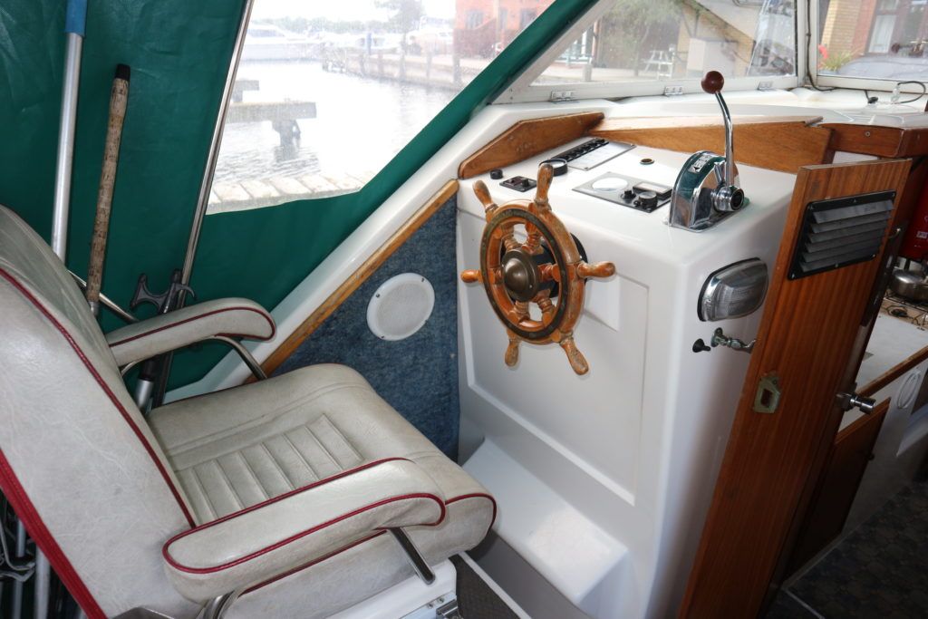 COLIN FACEY 26 – 1994 – 1 x Nanni 3.90HE 22.5hp diesel engine. 4 berth accommodation with 1 x toilet/shower compartment. Galley with 2 burner gas hob, grill, oven, sink and fridge. Specification including shore power & warm air heating. BSC 07/22. Benefiting from a large cockpit with cushioned seating and a low air draft for extended river cruising.