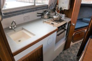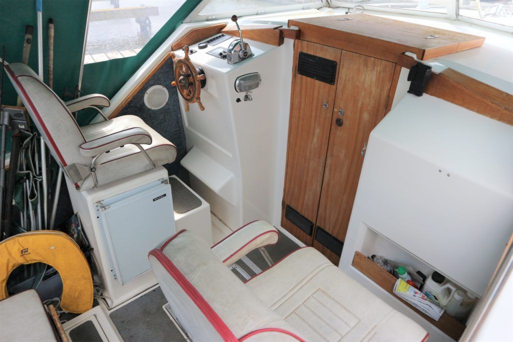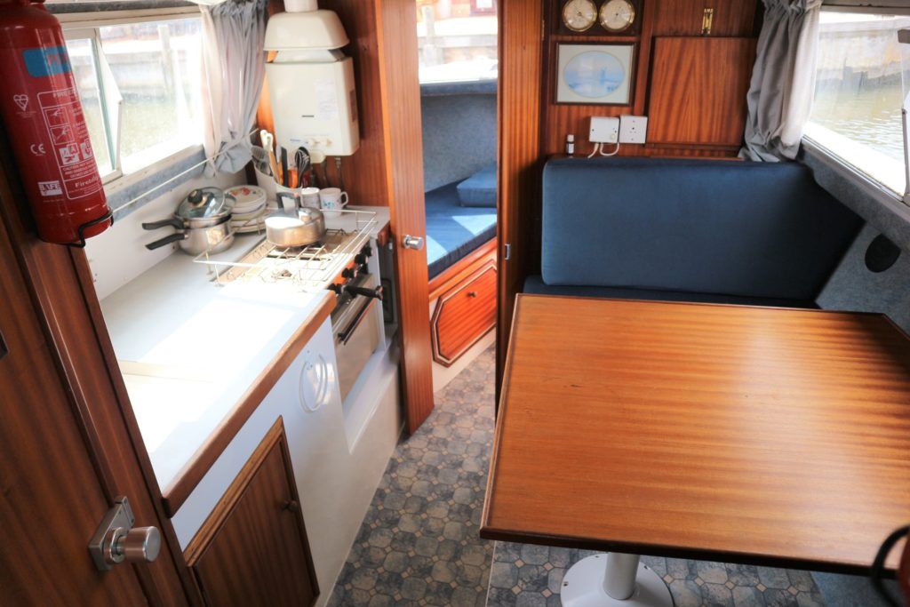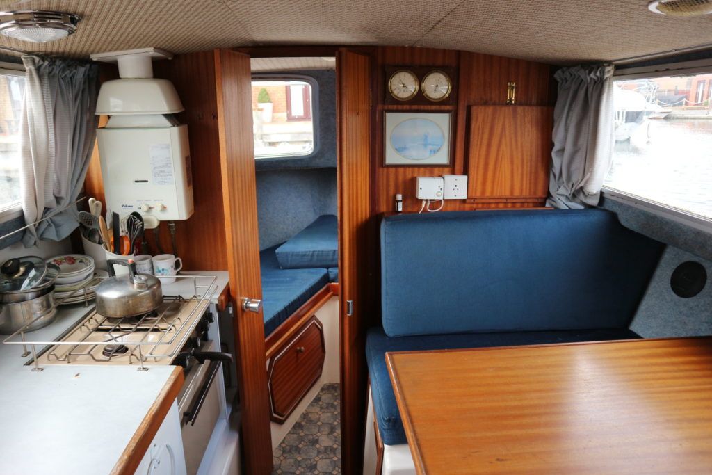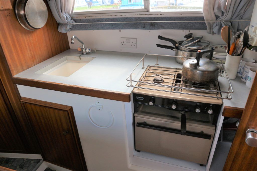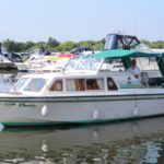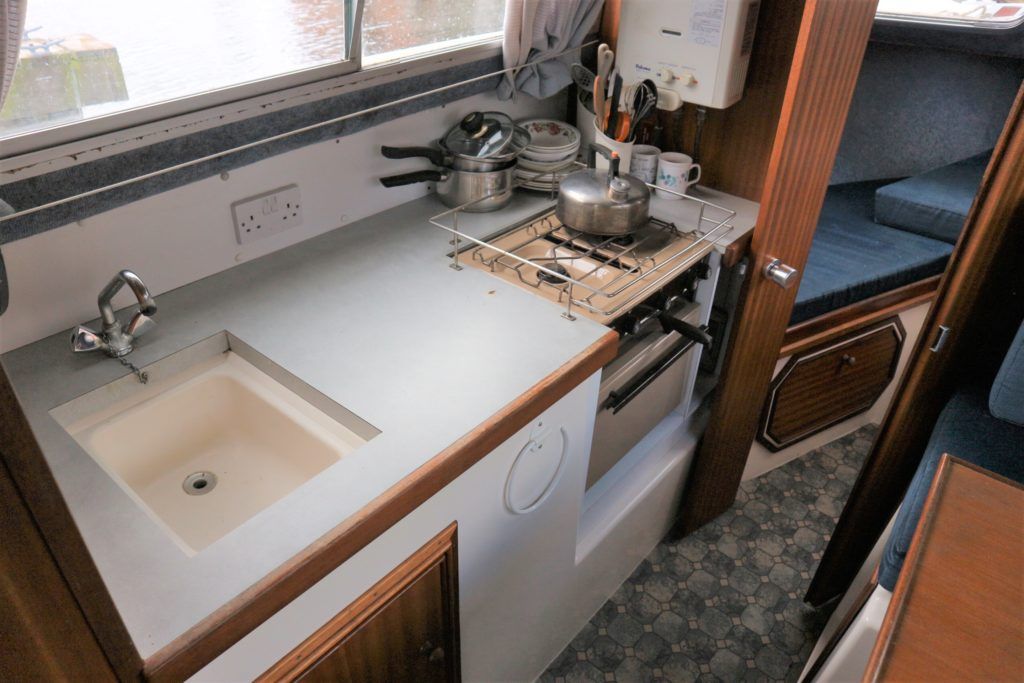 COLIN FACEY 26 – 1994 – 1 x Nanni 3.90HE 22.5hp diesel engine. 4 berth accommodation with 1 x toilet/shower compartment. Galley with 2 burner gas hob, grill, oven, sink and fridge. Specification including shore power & warm air heating. BSC 07/22. Benefiting from a large cockpit with cushioned seating and a low air draft for extended river cruising.