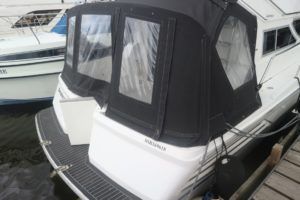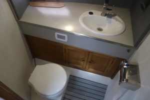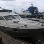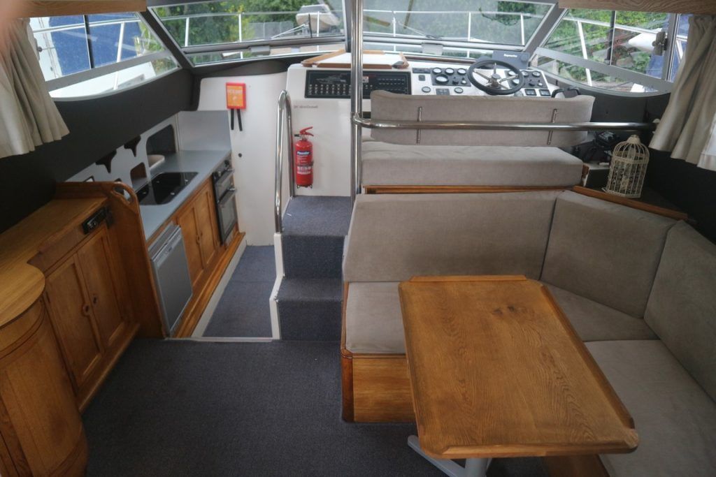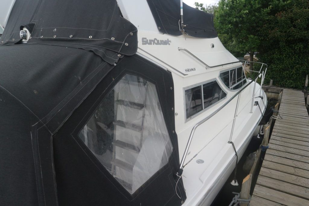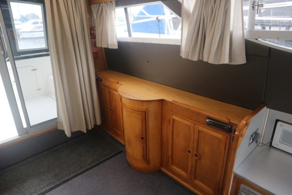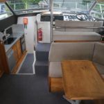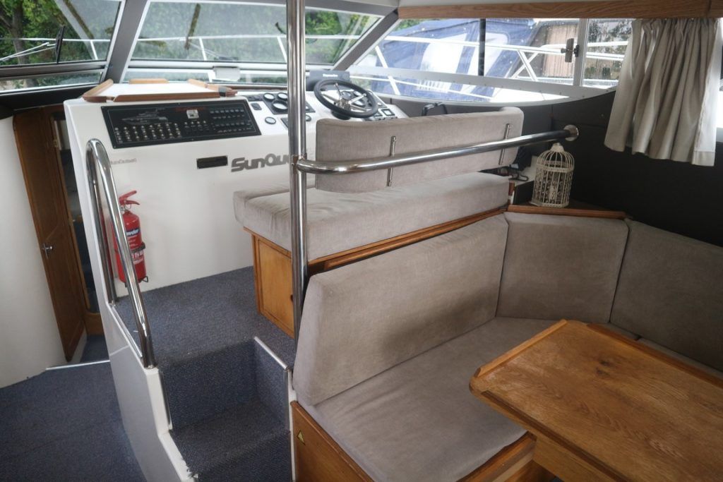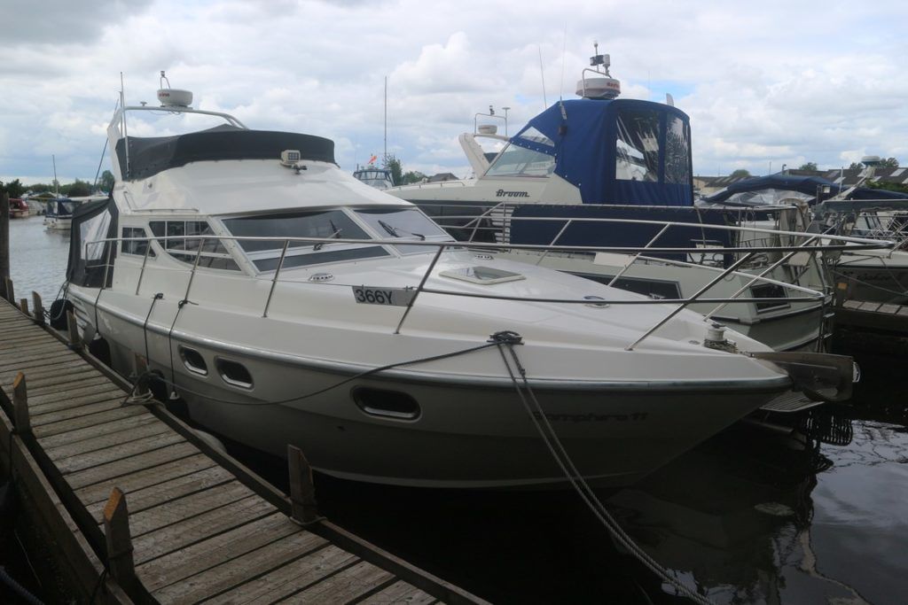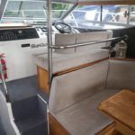 COLVIC SUNQUEST 34 – 1990 – Powered by twin Volvo AQAD31A 130hp diesels. 5 berth accommodation with 2 x toilets (1 x electric) and a shower. Well specified to include; Bowthruster, Combi battery charger and inverter, warm air heating, electric windlass, range of navigation equipment including a Raymarine Hybrid touch plotter and shore power supply. Folding radar arch. BSC 06/2019. Well equipped and great accommodation for a 34ft cruiser!