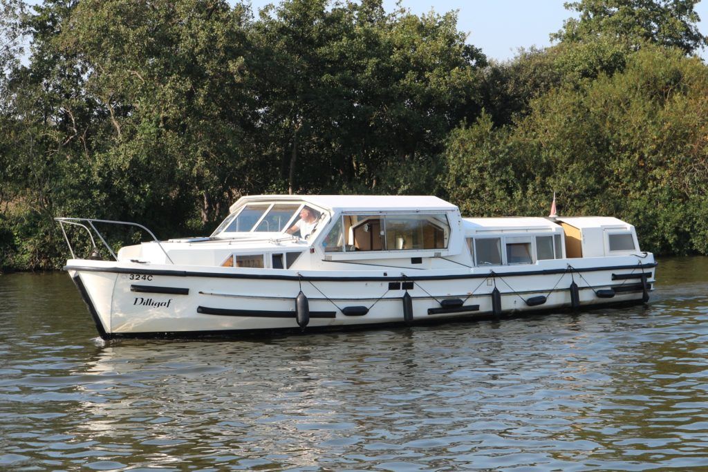 CONNOISSEUR 1275 – 1986 – BMC 2.5 diesel engine on hydraulic drive. 6 berth accommodation in three cabins + saloon with two toilets to holding tanks & 2 showers. Generously sized galley and saloon with sliding wheelhouse roof and folding windscreens, wet heating system with radiators, shore power, battery charger, immersion heater. BSC Feb 2022. A spacious family cruiser with good living accommodation, perfect for extended cruising & would make an ideal live aboard.
