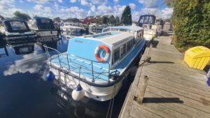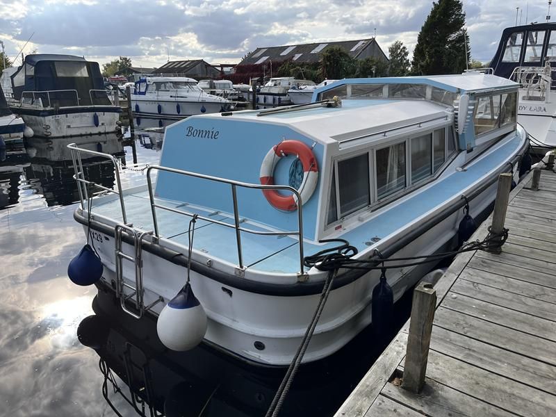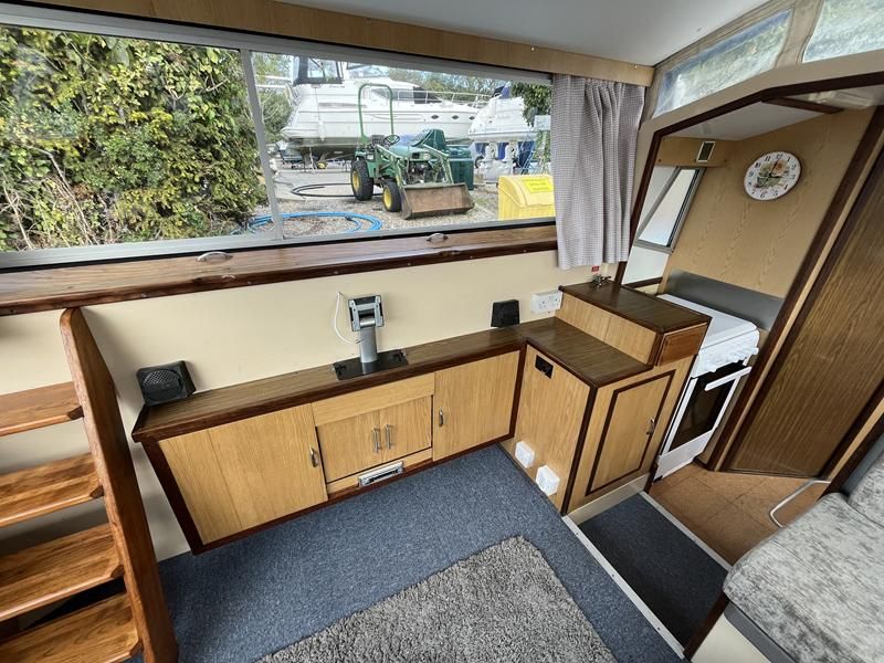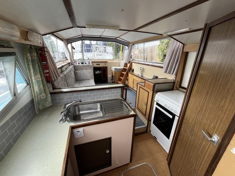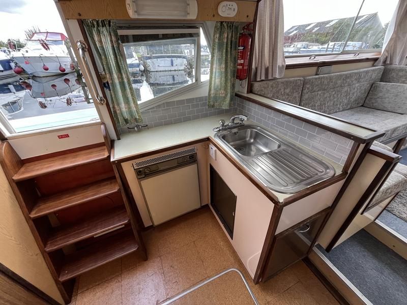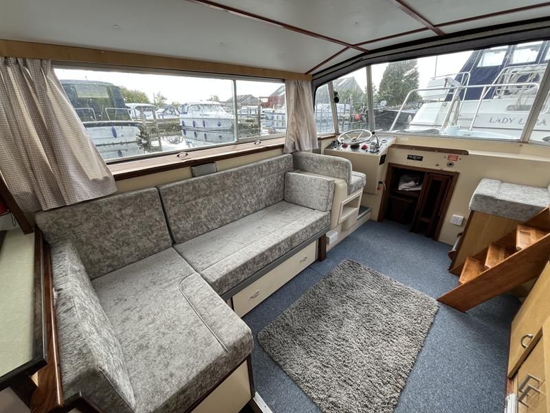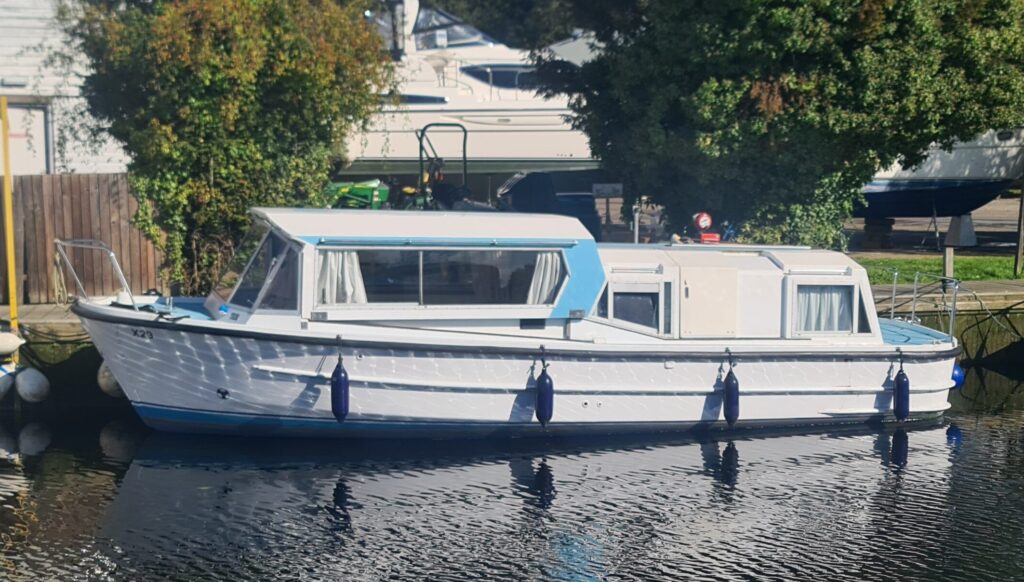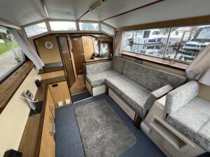 Connoisseur 29 – Circa 1984 – Powered by a BMC 1.5 diesel engine (hydraulic drive). 4 berth accommodation over cabin & saloon with separate toilet & shower compartments. Spec including bow thruster, webasto heating, shore power, immersion heater, full sliding roof over saloon. BSC Expires August 2029. A spacious cruiser with comfortable accommodation, perfect for extended inland cruising. NYA STOCK – Sold with 3 month engine & gearbox warranty.