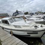CONNOISSEUR SUPER 8 – 1984 – Powered by a single Land Rover 55hp diesel through a hydraulic shaft – 7 berth accommodation with 2 toilets and 2 showers – Specification to include; Webasto warm air heating, holding tank, shore power with 240v supply and immersion, 12v supply, solar panels, oven, grill, refrigerator, auto bilge pump. Sliding saloon roof. BSC 07/24. A cavernous river cruiser, ideal for extended inland cruising or liveaboard! Well presented benefitting from recent investment and upgrade by current owner!
