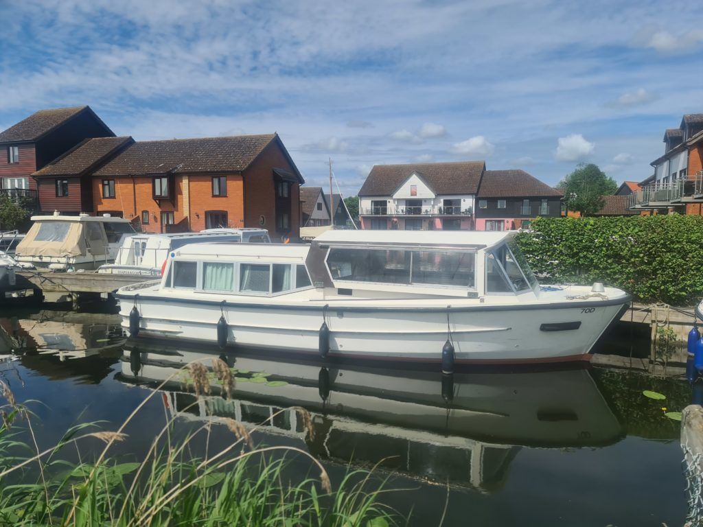 Connoisseur 900 river cruiser , circa 1984, BMC 36hp diesel engine on hydraulic drive. 4 berth accommodation, fridge, full standing cooker, septate shower compartment, sliding roof, BSS 2025. A spacious family cruiser with good accommodation, perfect for extended cruising ideal for cruising the broads waterways.