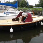 CORNISH CLAM 19 – 1997 – Single Yamnar 1GM10 9hp Diesel engine. 2 berths in 1 cabin with chemical toilet. Auxhillary tiller steering, Autohelm ST30, 2 new batteries 2013. A graceful motor launch with elegant lines showcasing her traditional look.