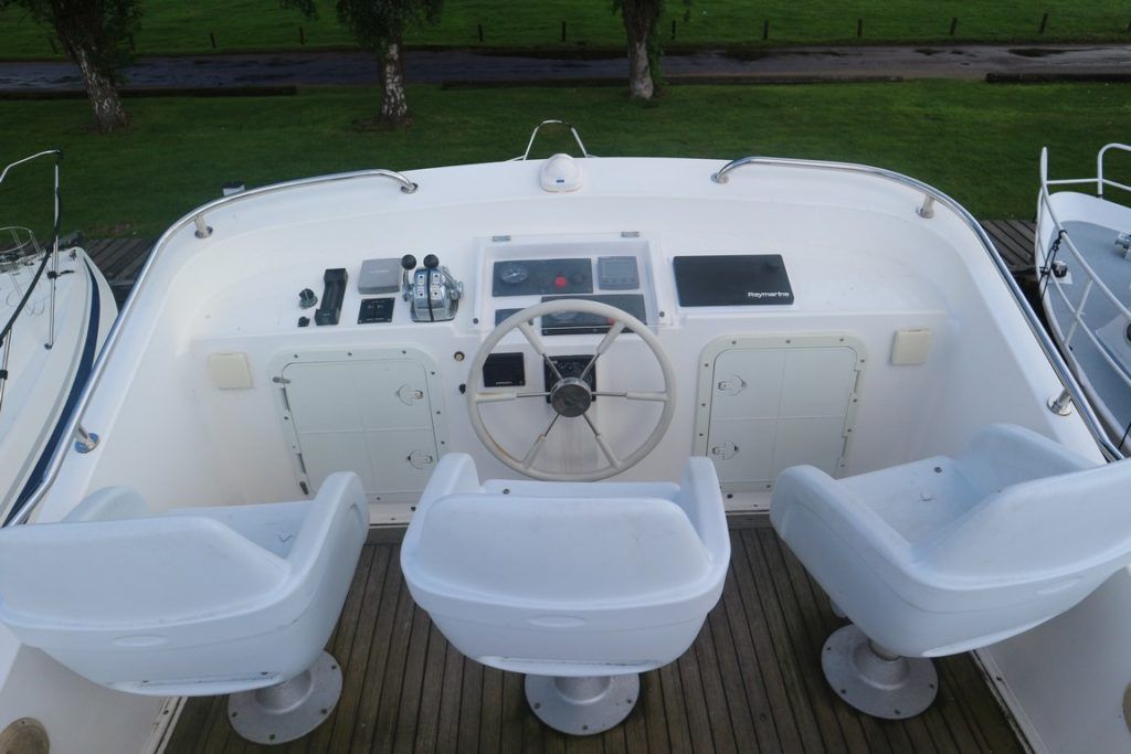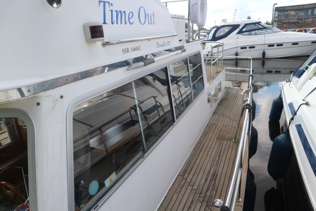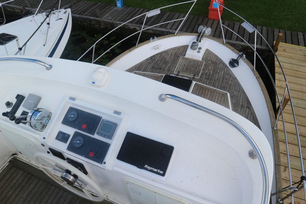 CORVETTE 320 – 2001 – Powered by twin Yanmar 6LP-DTE diesel engines. 4 berth accommodation across 2 cabins, 2 toilet and shower facilities. BSC until 03/23. Specification to include; holding tank, Eberspacher warm air heating (new 2019), electric windlass, a range of navigation equipment to include new Raymarine Axiom 9 plotter and Quantum scanner and shore power supply with battery charger and immersion. Full teak laid decks with folding radar arch for increased inland access. Engine service May 2019. A very versatile cruiser offering supreme offshore abilities.