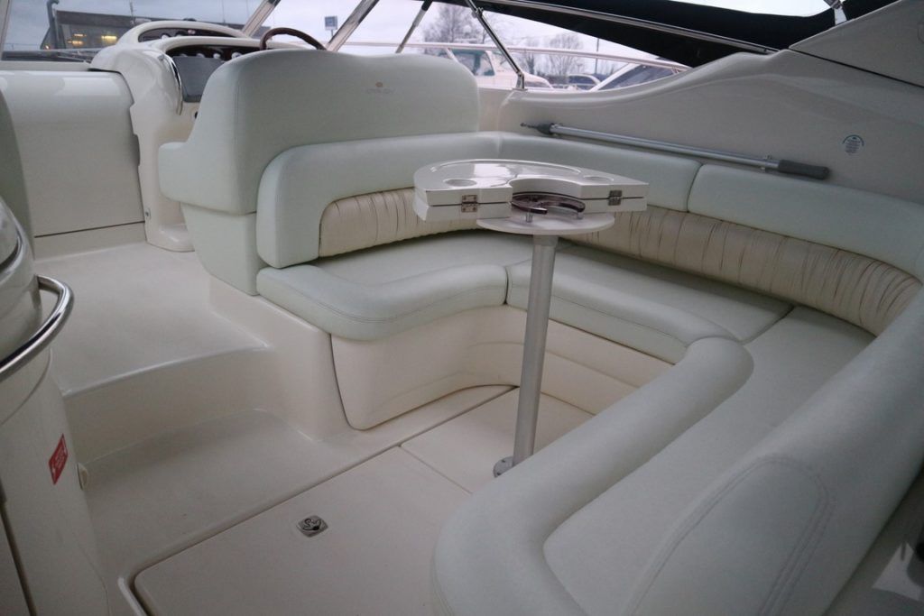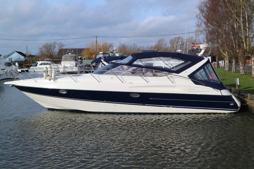 CRANCHI ENDURANCE 39 – 2003, 2 x Volvo KAD300, 4 berths, toilet and shower, generator, air con, tender garage, bow thruster, Raymarine RL70 plotter and radar, Raymarine auto pilot, Raymarine 240 VHF, leather saloon upholstery, large sociable cockpit with a wet bar and fridge, the Cranchi 39 is a head turning boat in excellent condition throughout. NYA STOCK FULLY PREPARED BY OUR SERVICE CENTRE
