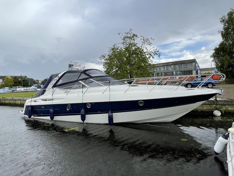 CRANCHI ENDURANCE 41 – 2006 – Powered by twin Volvo D6 350hp diesels through sterndrives – 4 berth accommodation with toilet and shower – Specification to include; Bowthruster, holding tank, electric windlass, warm air heating, shore power supply with 240v sockets and immersion, trim tabs. Cockpit wet bar with BBQ and teak laid floor. Striking blue hull recently machine polished. Less than 500 engine hours! This Cranchi 41 offer masses or style and performance, a real head turner!