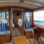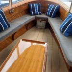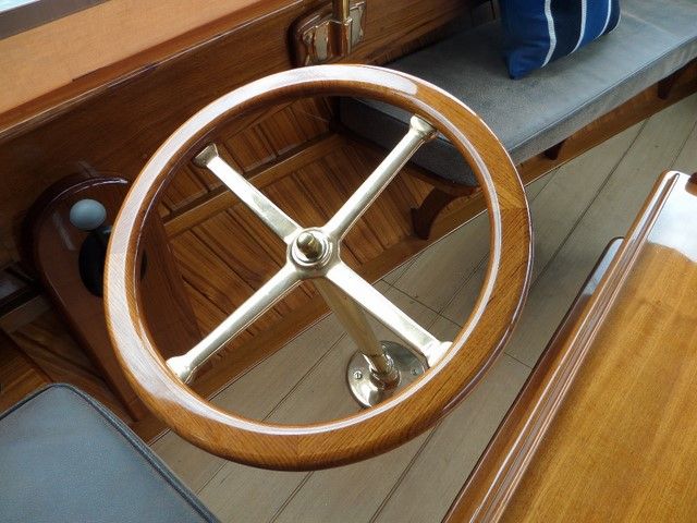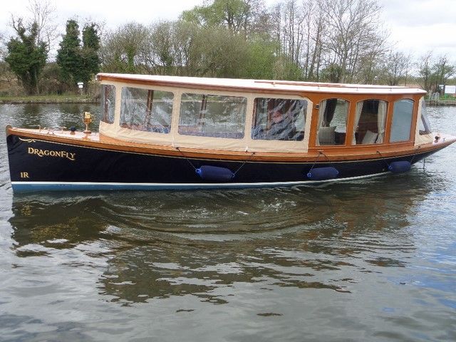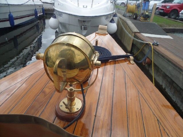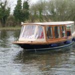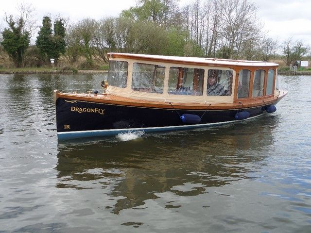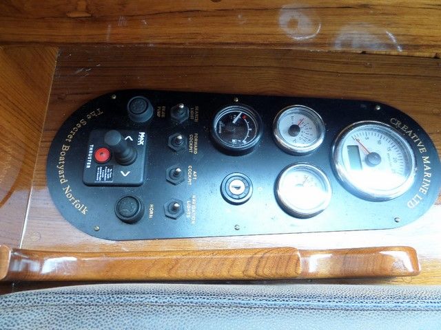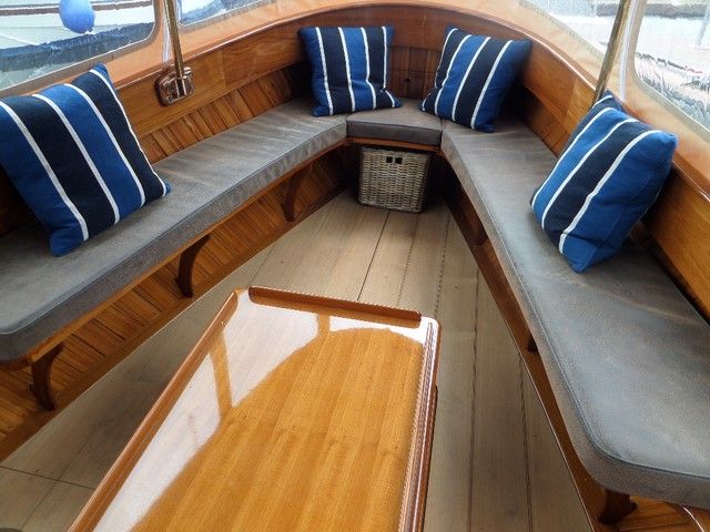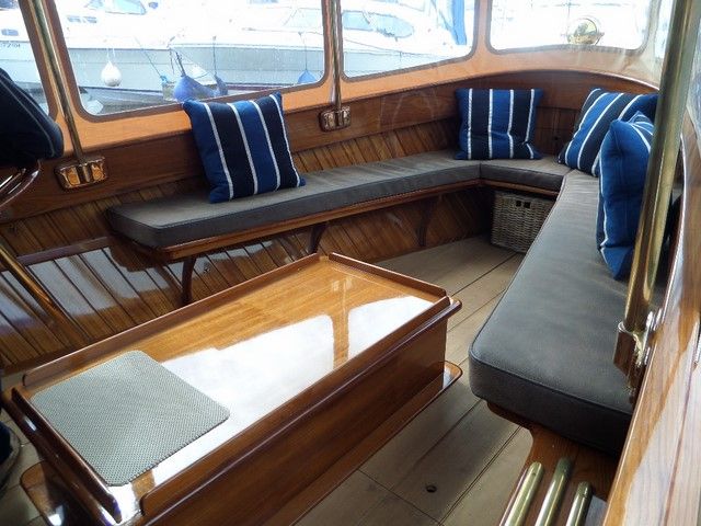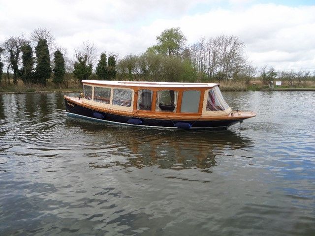 FROLIC 31 – Built in 2010 by Creative Marine to a simply breath taking bespoke specification and finish. This beautiful gentlemans launch has a dark navy fiberglass hull and a superstructure crafted from solid Burmese teak. Her fittings are high quality brass (even the table legs!). She has a single Nanni diesel engine on a shaft, bowthruster, galley area with Wallace hob, pumpout toilet and hand basin. Boat shed and Barn stored with only 50 hours. She must be seen to be fully appreciated!