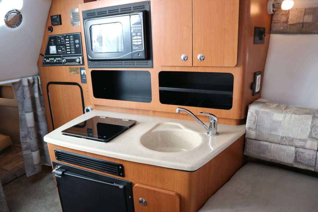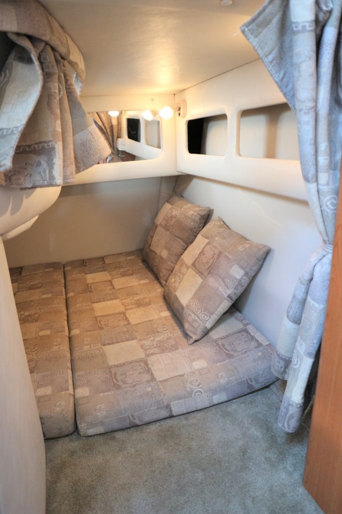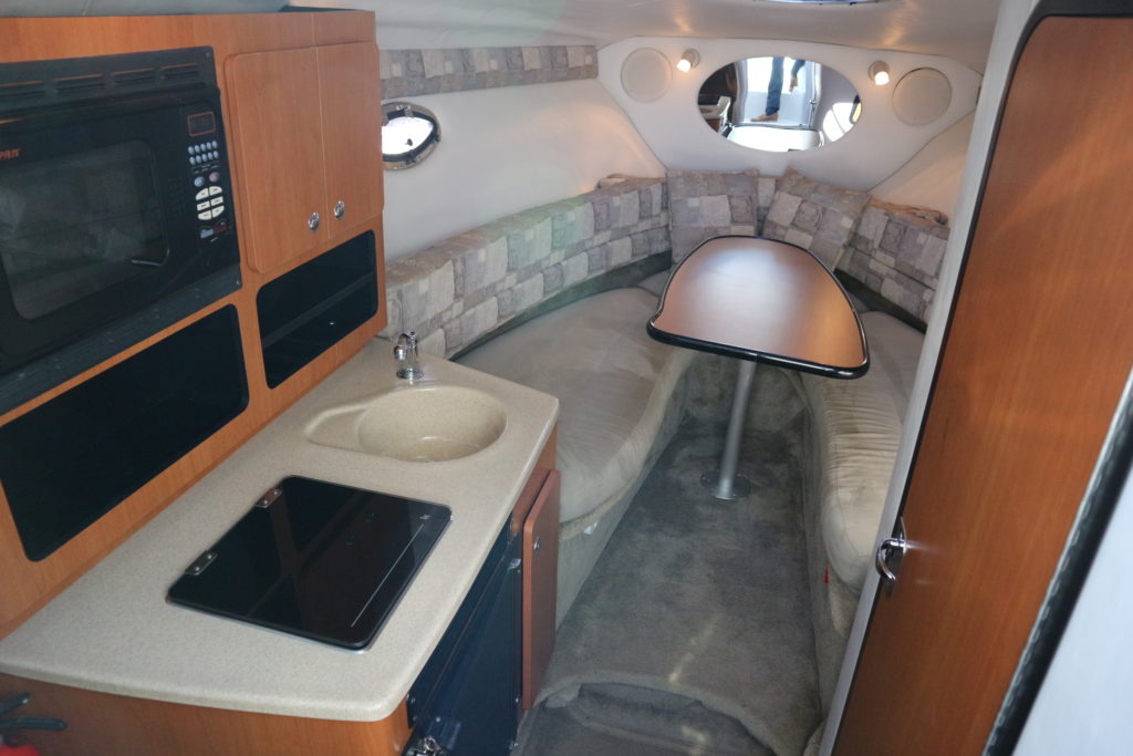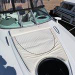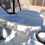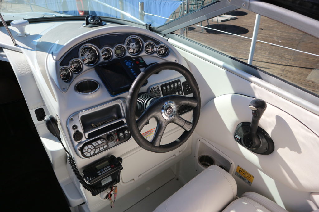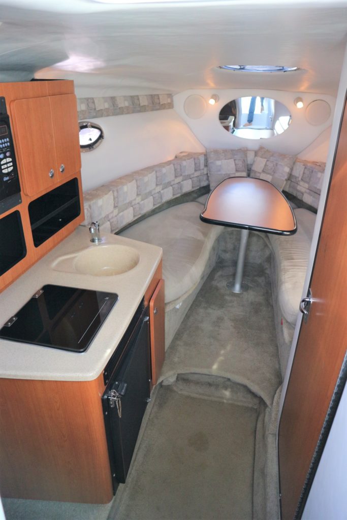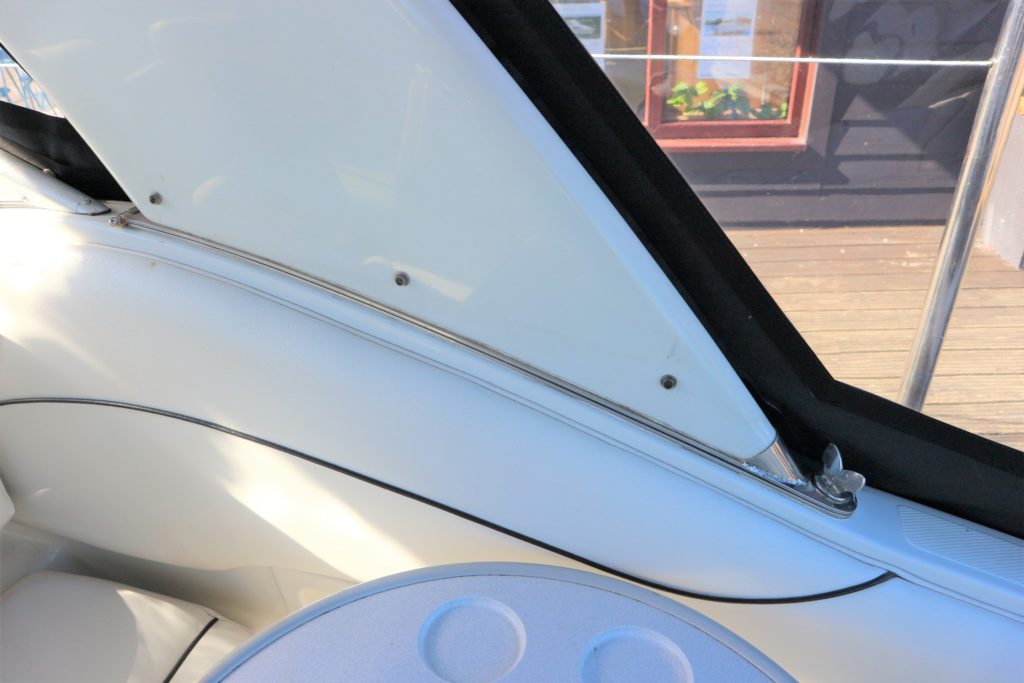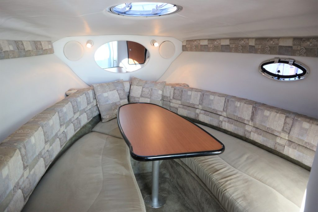 CROWNLINE 270 CR – 2007 – 1 x VW V6 225hp Diesel Engine. 4 berth accommodation with 1 x toilet to holding tank/shower compartment. A high spec including bow thruster, shore power, battery charger, immersion heater, warm air heating to cabin & cockpit, electric windlass, folding GRP arch, VHF, GPS, canopy new 05/18. A sleek sports cruiser combining great performance with style and diesel engine practicality.