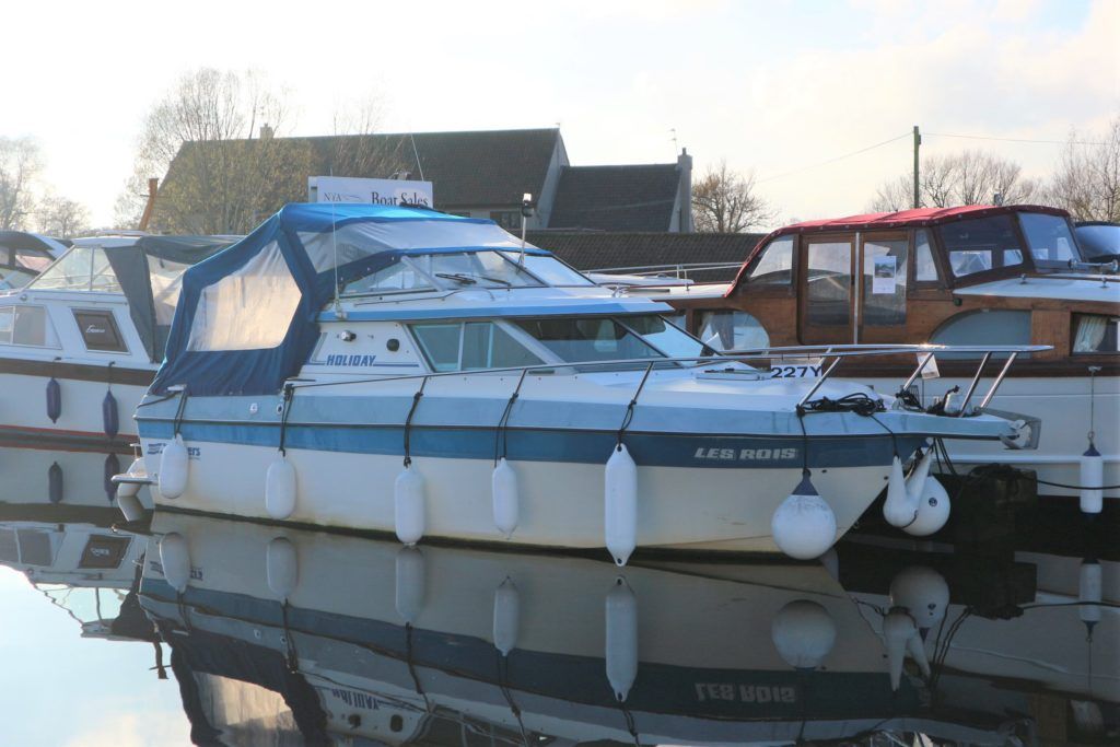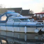 CRUISERS INTERNATIONAL HOLIDAY 224 – Circa 1988 – 1 x Volvo Penta 151B (146hp) petrol engine. 4 berth accommodation with 1 x toilet/shower. Galley with two burner hob, sink with hot water supply & fridge. Full cockpit canopy, shore power, bathing platform, boat safety certificate expires 06/2021. A great starter boat with a generously sized cockpit for a boat of its size. NYA STOCK – As traded in.