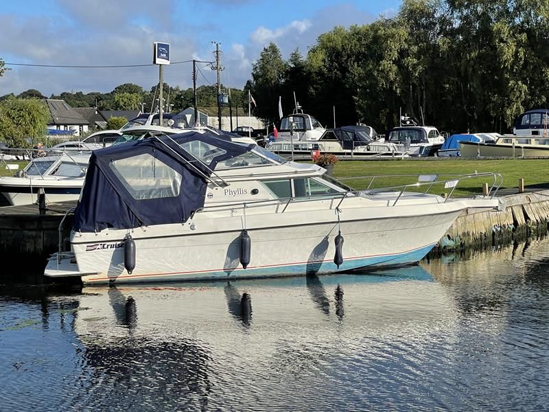 CRUISERS INTERNATIONAL 224 – 1989 – Powered by a single Volvo AQ205A 205hp petrol through a sterndrive – 4 berth accommodation with toilet and shower – specification to include; trim tabs, calorifier with 240v immersion, shore power supply with 240v sockets and charger, depth log, hob, refrigerator and sink. Low air draft for increased access. oil change and head gaskets 2021. An ever popular sports cruiser, good introduction boat!