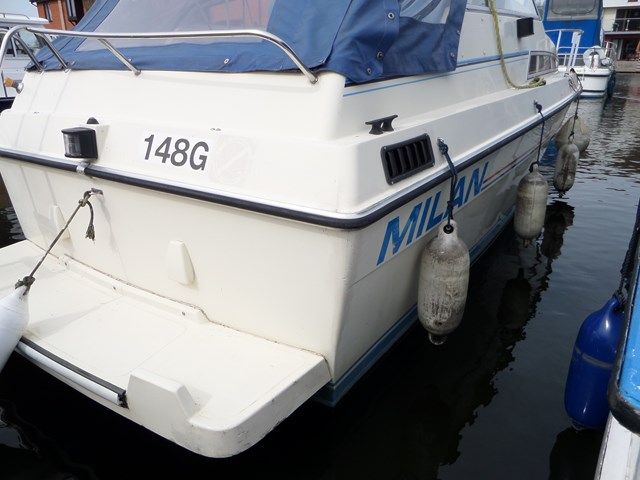 DARRAGH MILAN – Circa 1986 with a Volvo Penta 146HP petrol (sterndrive). 4 berths, chemical toilet, cold water supply, fridge, shore power. Double helm position, BSC expires 2016, bathing platform, boarding ladder, full cockpit canopy, new alternator and water pump.
