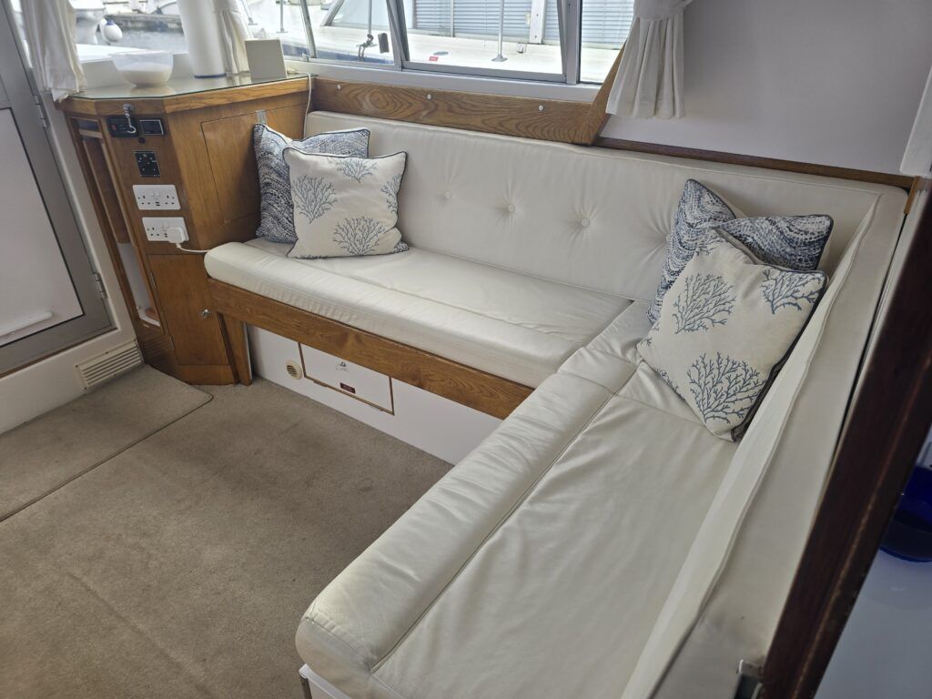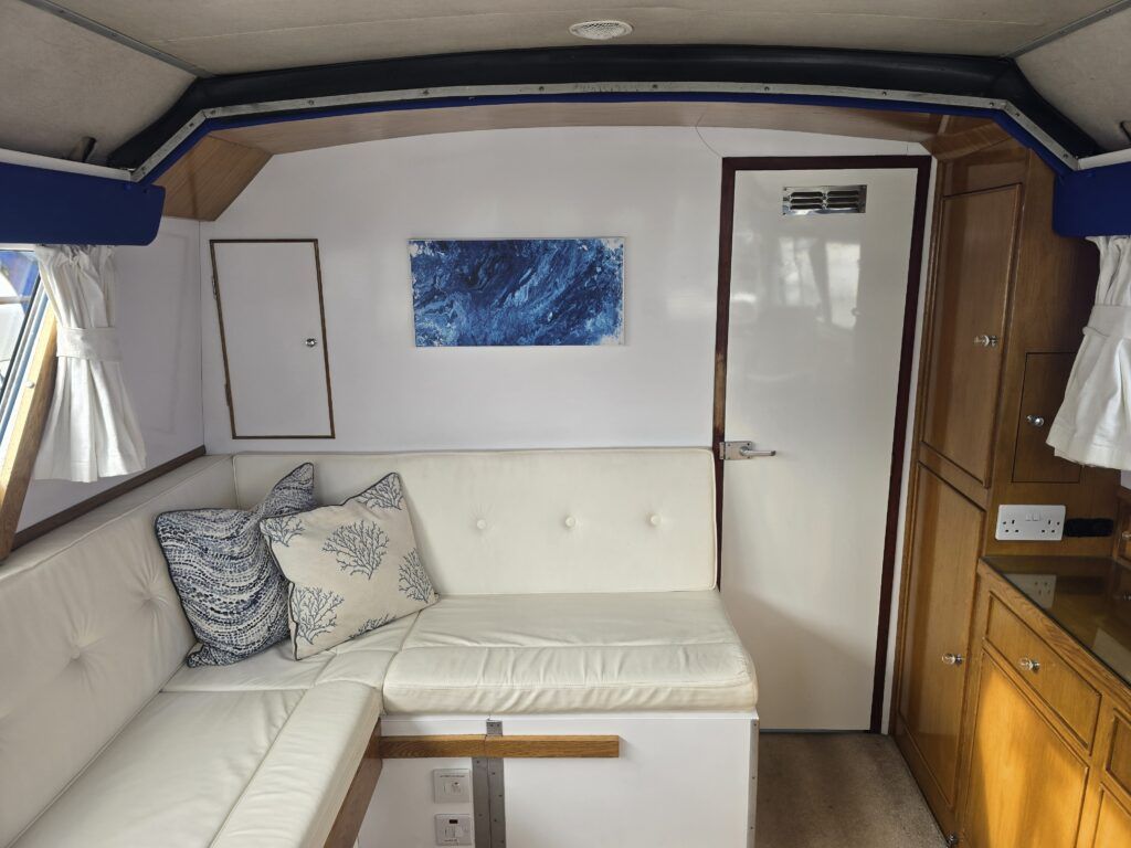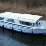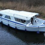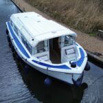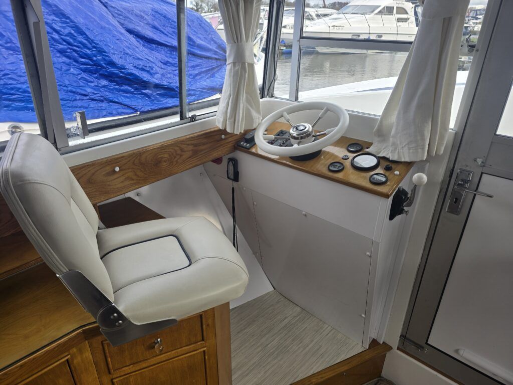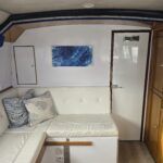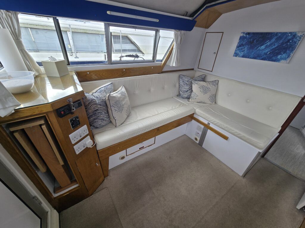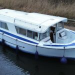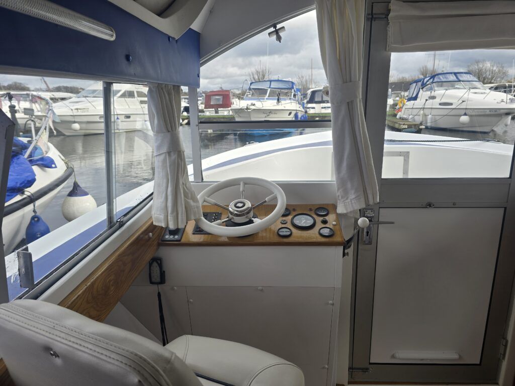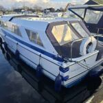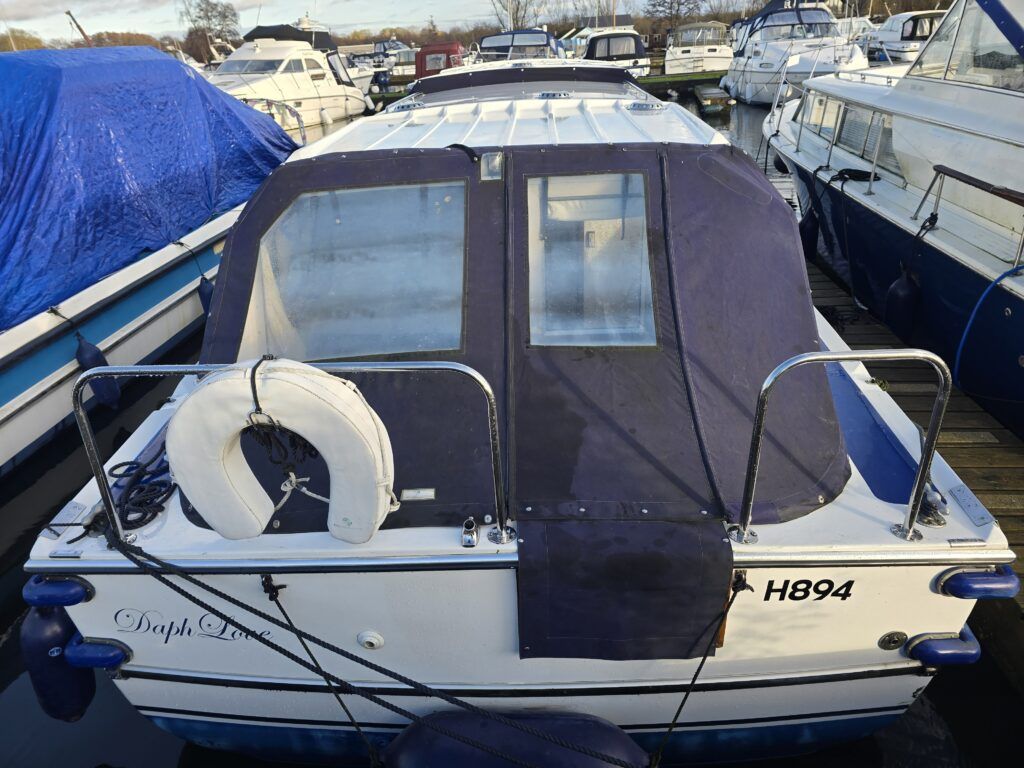 Dawncraft DC30 – 1975 – Powered by a BMC Thornycroft 1.5 diesel engine. 5 berth accommodation with a separate toilet & shower compartment. Specification to include; Bow and stern thrusters with remote, warm air heating, shore power, inverter, battery charger, immersion, holding tank, forward and aft canopies, New diesel tank 2025, Galley refurbished 2022. Engine serviced and antifouled 2025. BSC 03/30. A well-maintained, highly specified DC30 offering excellent family accommodation and capable of passing beneath most Broadland bridges.