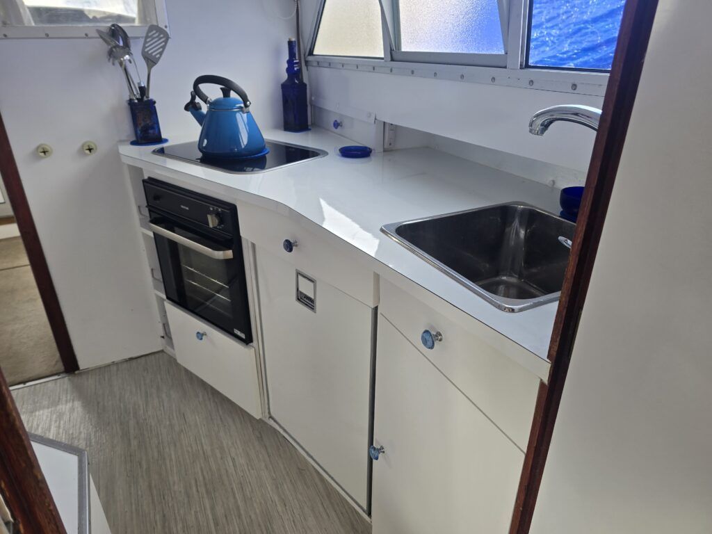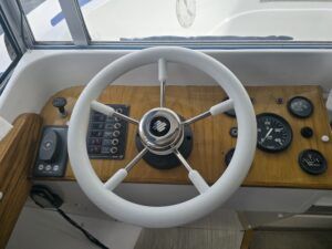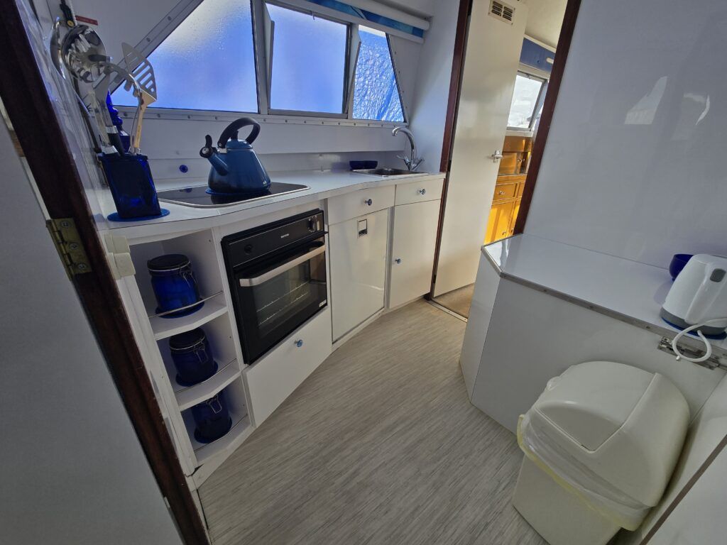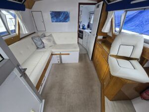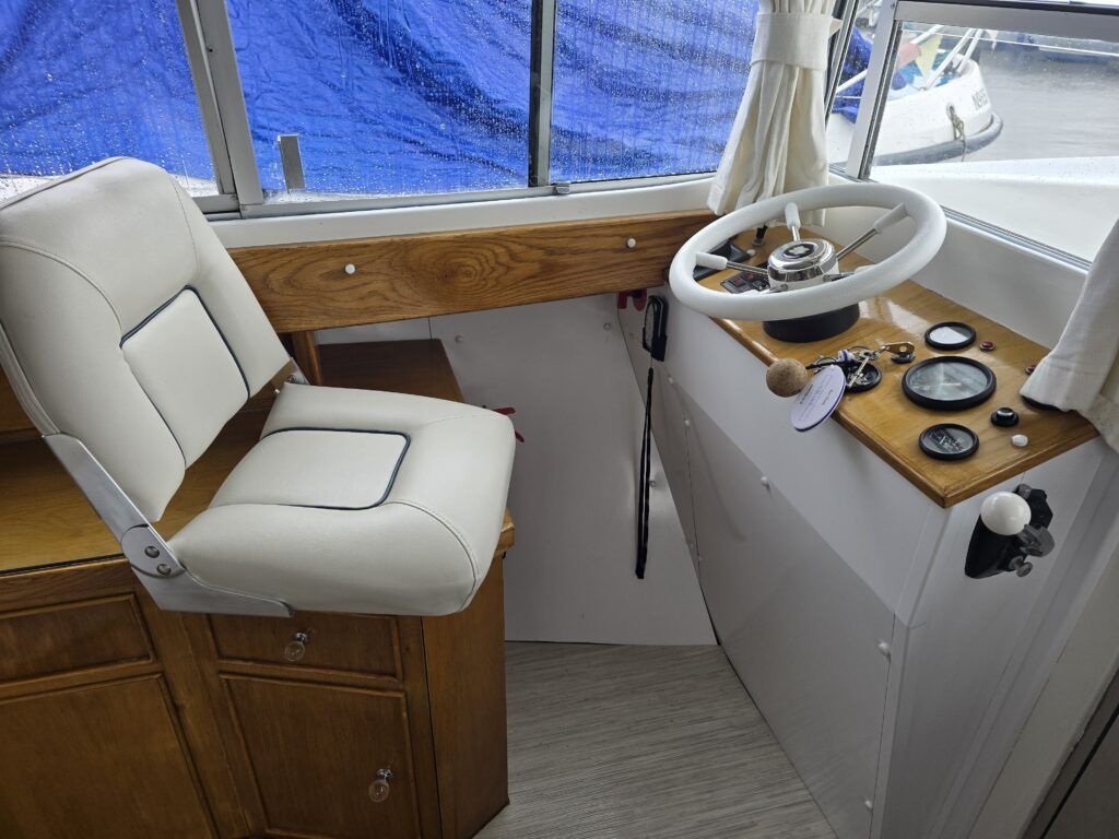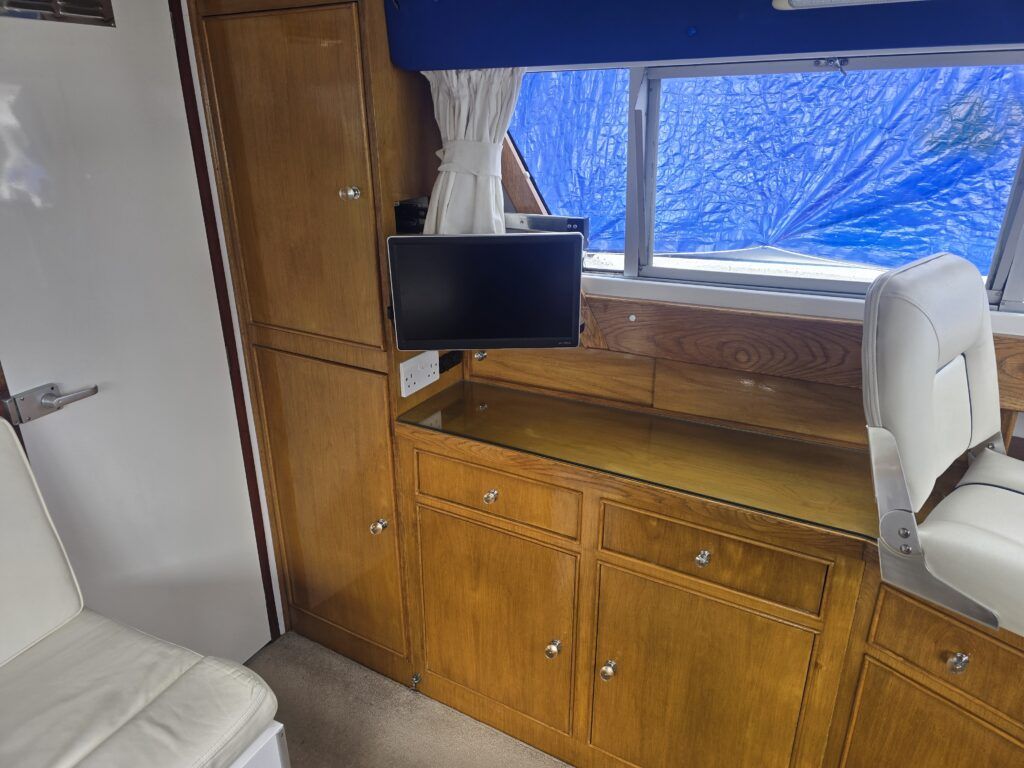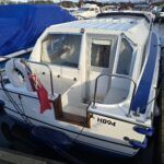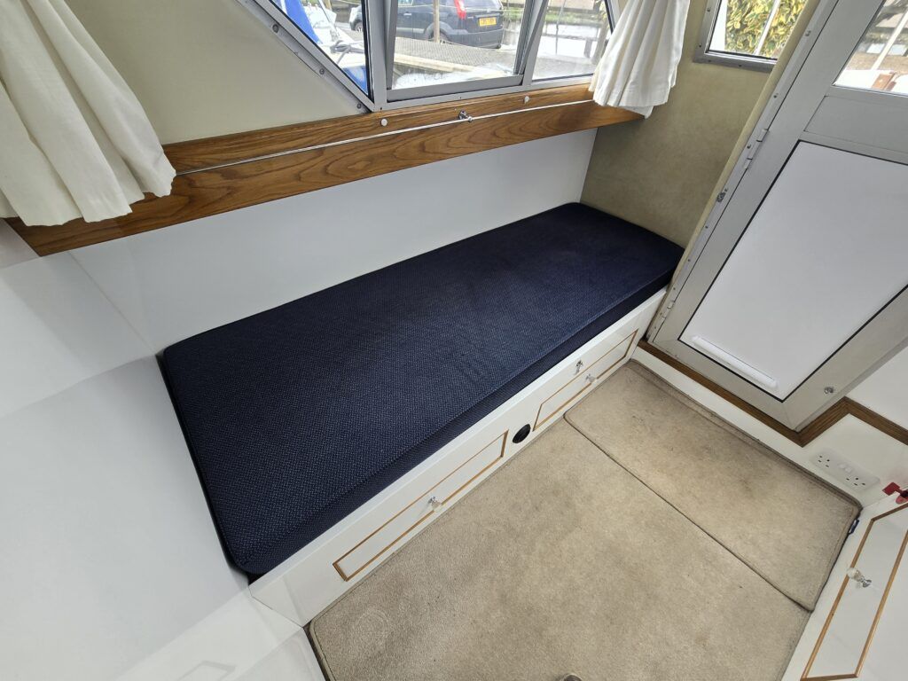 Dawncraft DC30 – 1975 – Powered by a BMC Thornycroft 1.5 diesel engine. 5 berth accommodation with a separate toilet & shower compartment. Specification to include; Bow and stern thrusters with remote, warm air heating, shore power, inverter, battery charger, immersion, holding tank, forward and aft canopies, New diesel tank 2025, Galley refurbished 2022. Engine serviced and antifouled 2025. BSC 03/30. A well-maintained, highly specified DC30 offering excellent family accommodation and capable of passing beneath most Broadland bridges.