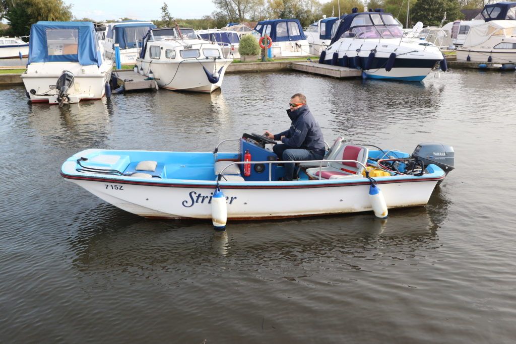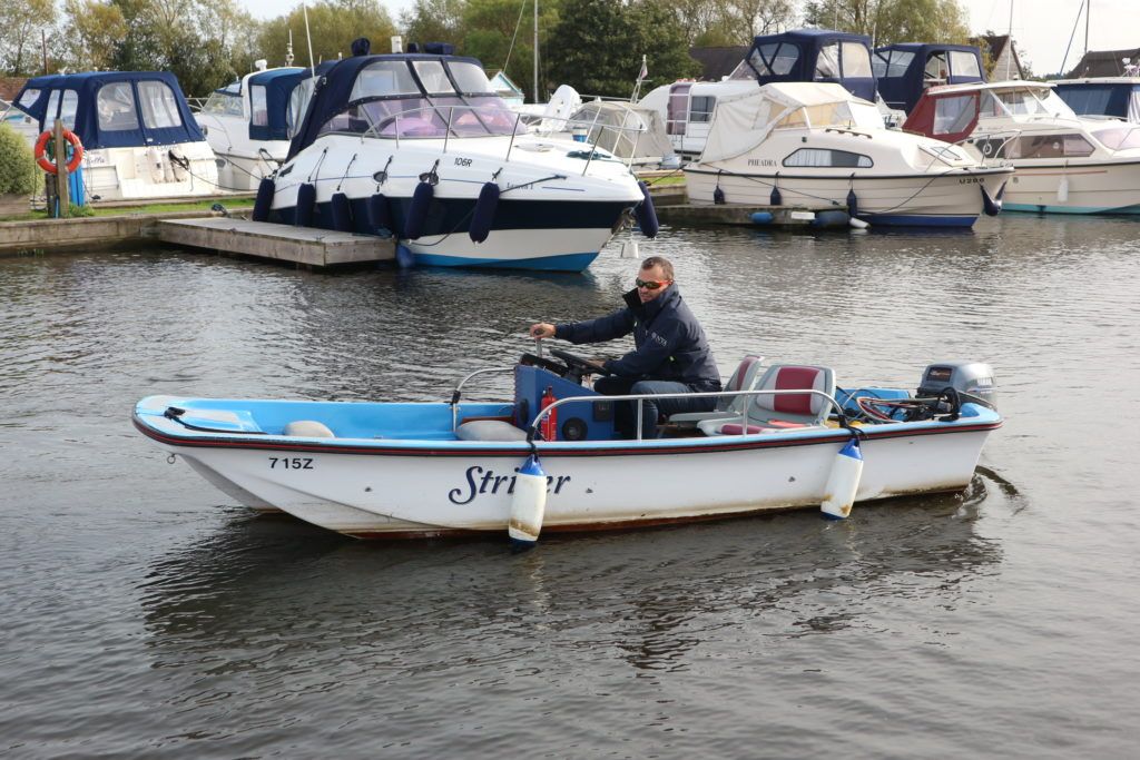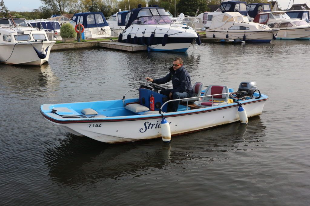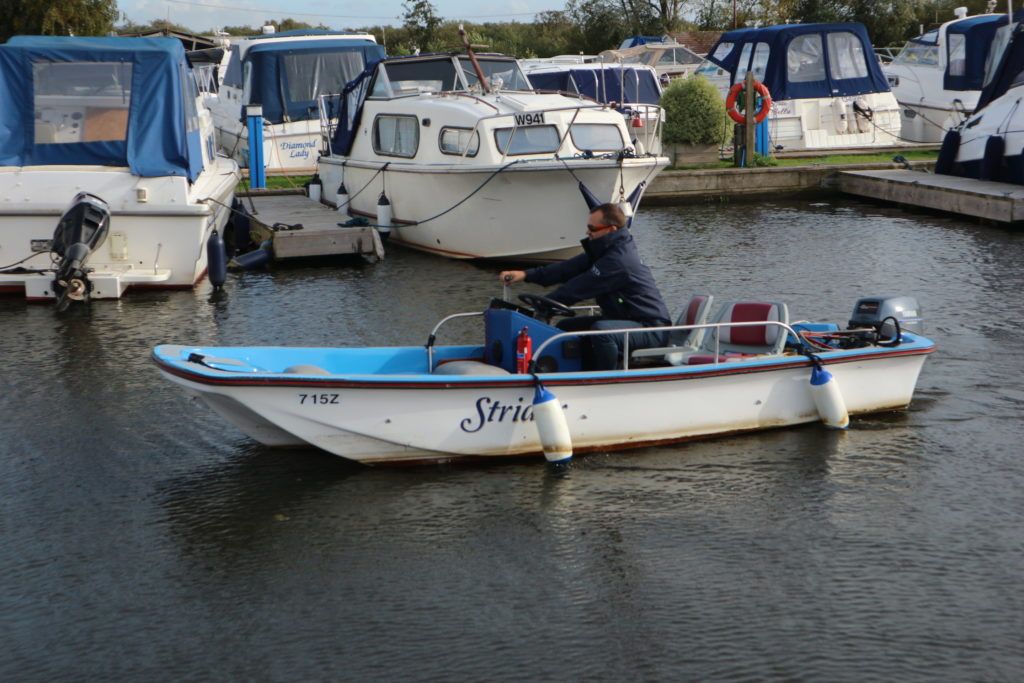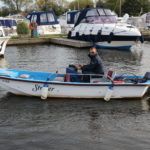 Dell Quay Dory 13 – Yamaha 9.9 electric start outboard engine, helm console, bilge pump, helm and navigators seats, 12v solar charger, tonneau cover. A perfect boat to explore the top end of the broads or for fishing excursions.