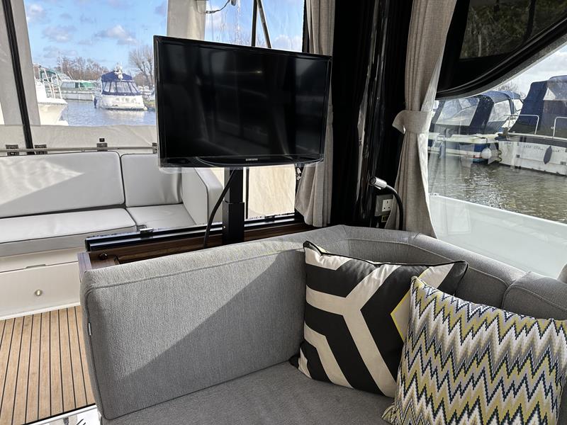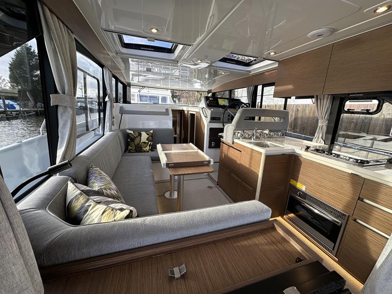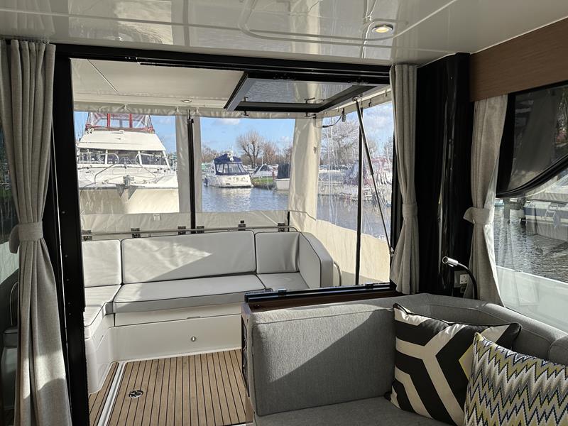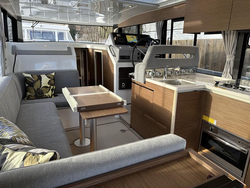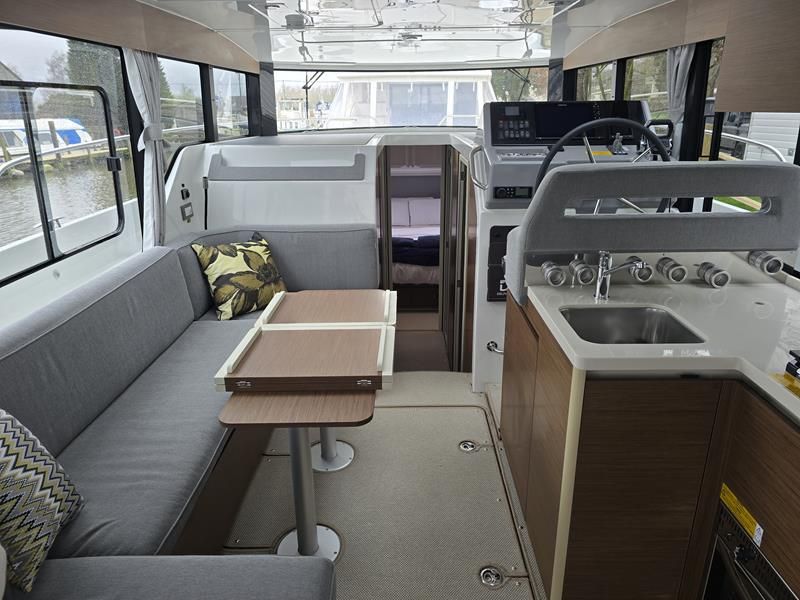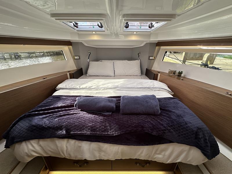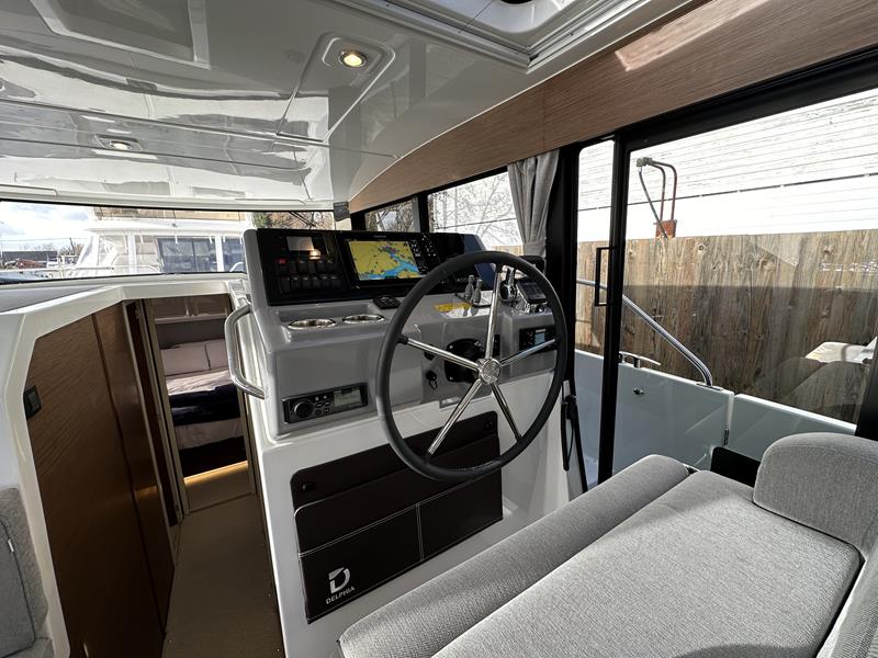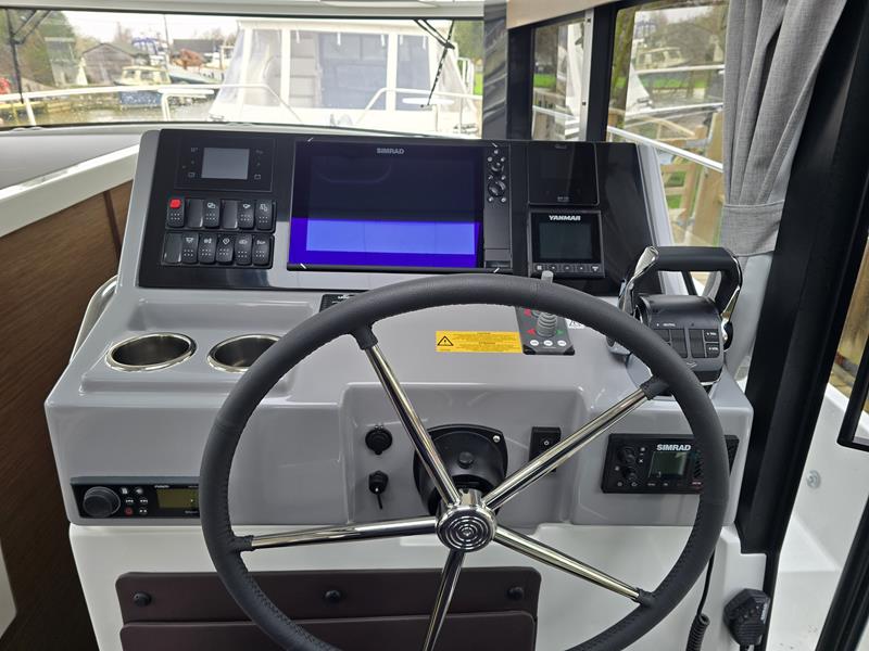 New Delphia 11 Sedan – Powered by a Yanmar 4LV150 150hp diesel through shaft drive. 4 berth accommodation in two cabins with separate toilet and shower compartments. An enviable specification includes; bow & stern thrusters, warm air heating, Simrad NSS EVO 12″ plotter, VHF, inverter/charger, trim tabs, Fusion audio system, electric windlass, immersion, teak cockpit and more! A versatile craft with fantastic deck space, modern interior with fully glazed saloon and single-engine economy. Sold with full Manufacturers Warranty.