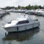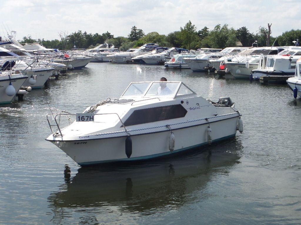 DOLPHIN 19 RIVER CRUISER – Circa 1989 – Honda 8hp power thrust outboard engine. Great starter boat with 2 + 2 accommodation and toilet compartment, benefiting from a new outboard fitted 2014 . Boat safety certificate until Feb 2025, a great weekender to get out on the water. This is a project boat that is in need of cosmetic attention and headlining replacement , As Traded in