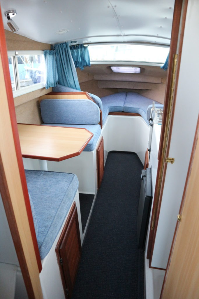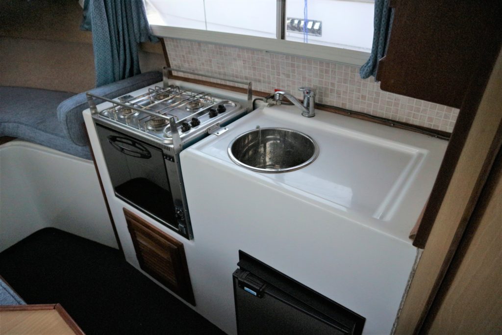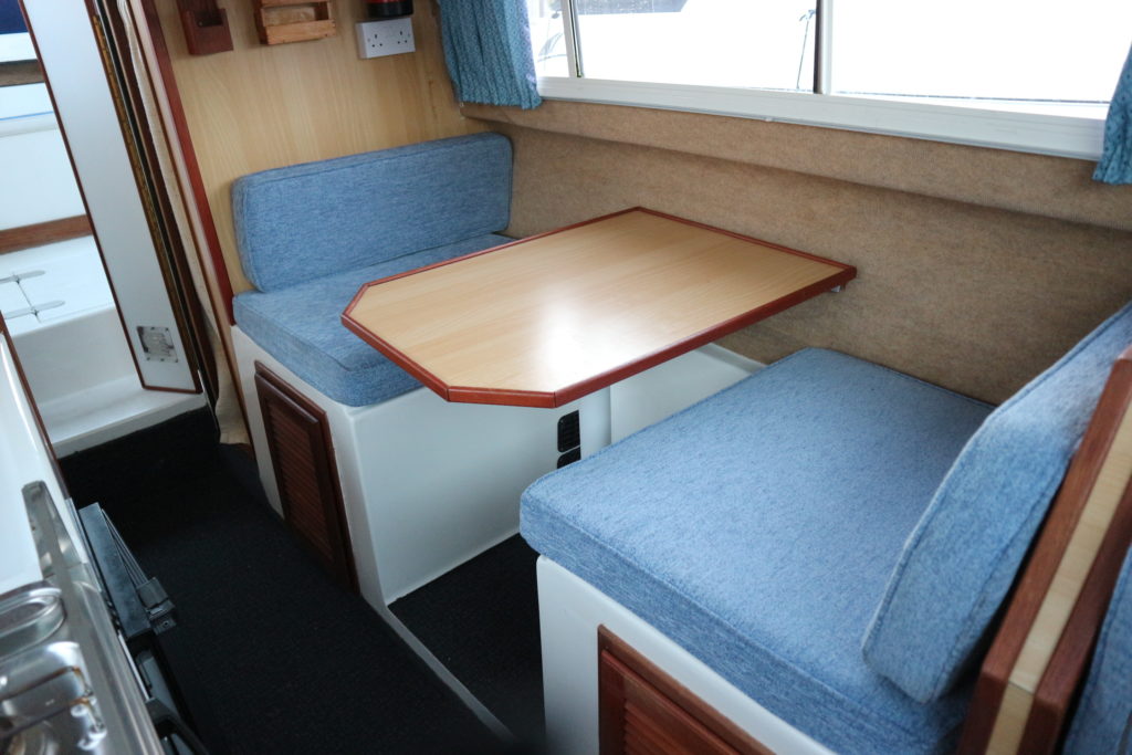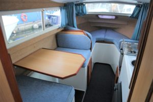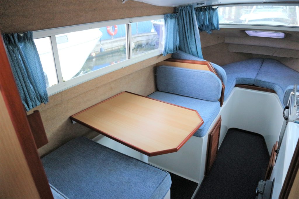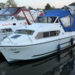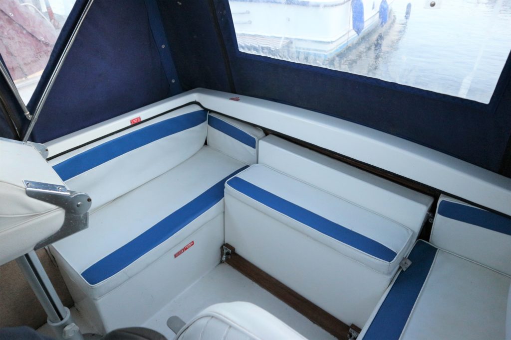 DOLPHIN 21 – 2008 – 25hp Suzuki outboard petrol engine. 4 berth accommodation with 1 x toilet to holding tank & shower. Galley with 4 burner hob, oven, grill & fridge. Specification including shore power, warm air heating, water heater, New BSC 11/22, folding canopy and screens for a low airdraft.